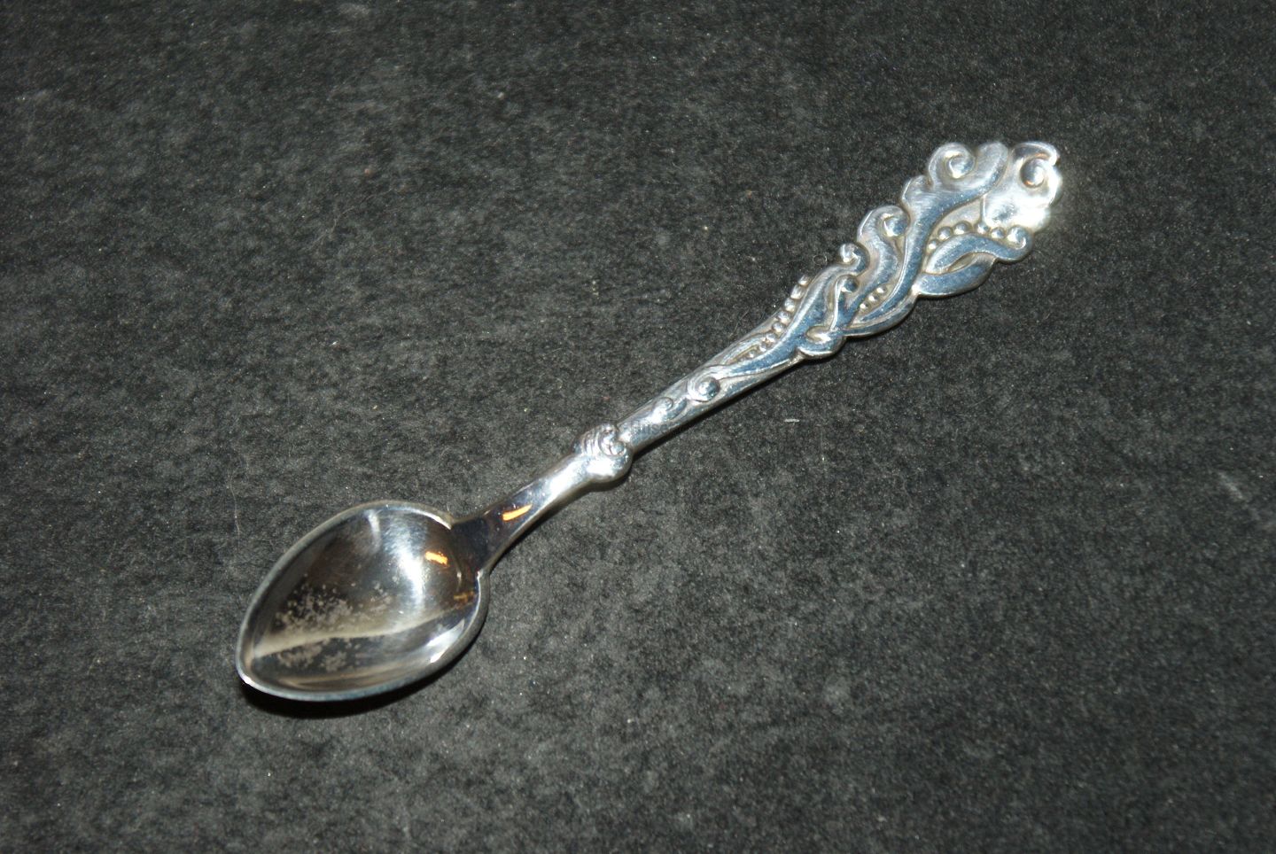 Salt spoon Tang silver cutlery Cohr Silver Length 7.5 cm. with engraved initials Well maintained condition All cutlery is polished and packed in a bag