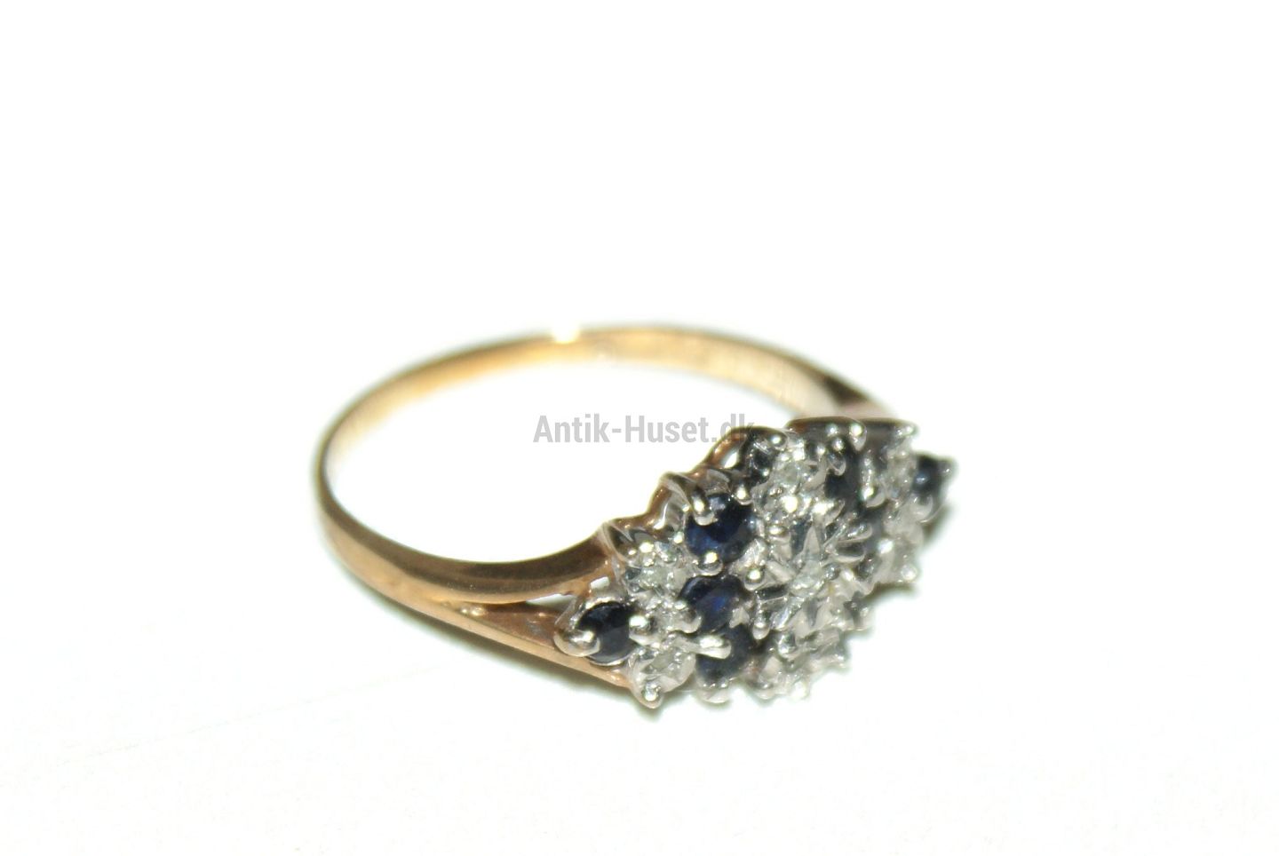 Gold ring with Diamonds and Sapphire 9 Karat Stamp: 375, English Size: 57, 18.14 mm. Beautiful and well maintained. The product is not physically in the store Contact us for presentation