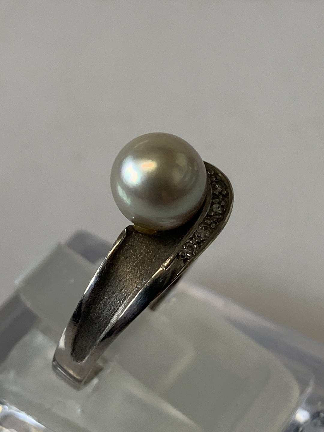 White Gold Ring with Pearl & Diamonds, 14 Karat