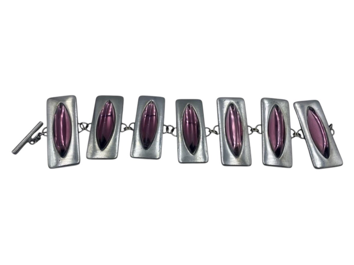 Jørgen Jensen Pewter, extra large bracelet with purple glass stone.