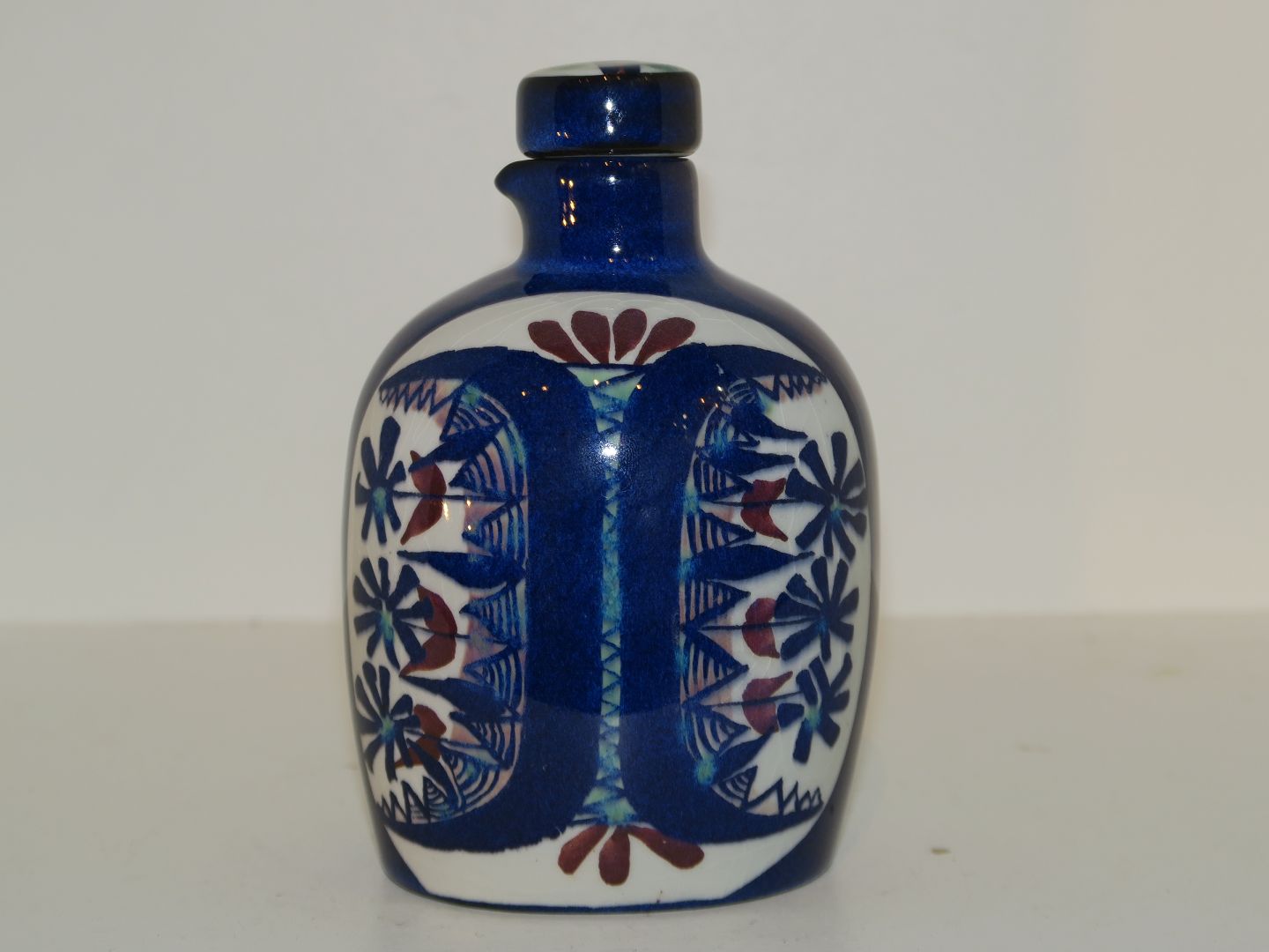 Aluminia Royal Copenhagen Faience Tenera, lidded bottle.