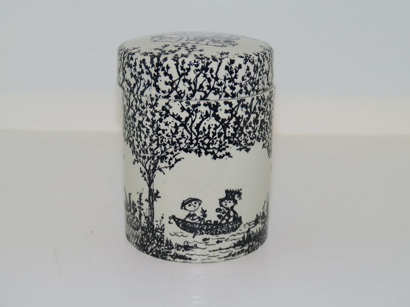 Nymolle art pottery, Bjorn Wiinblad, lidded jar. Decoration number 3043/681. Height 10.0 cm. Perfect condition.