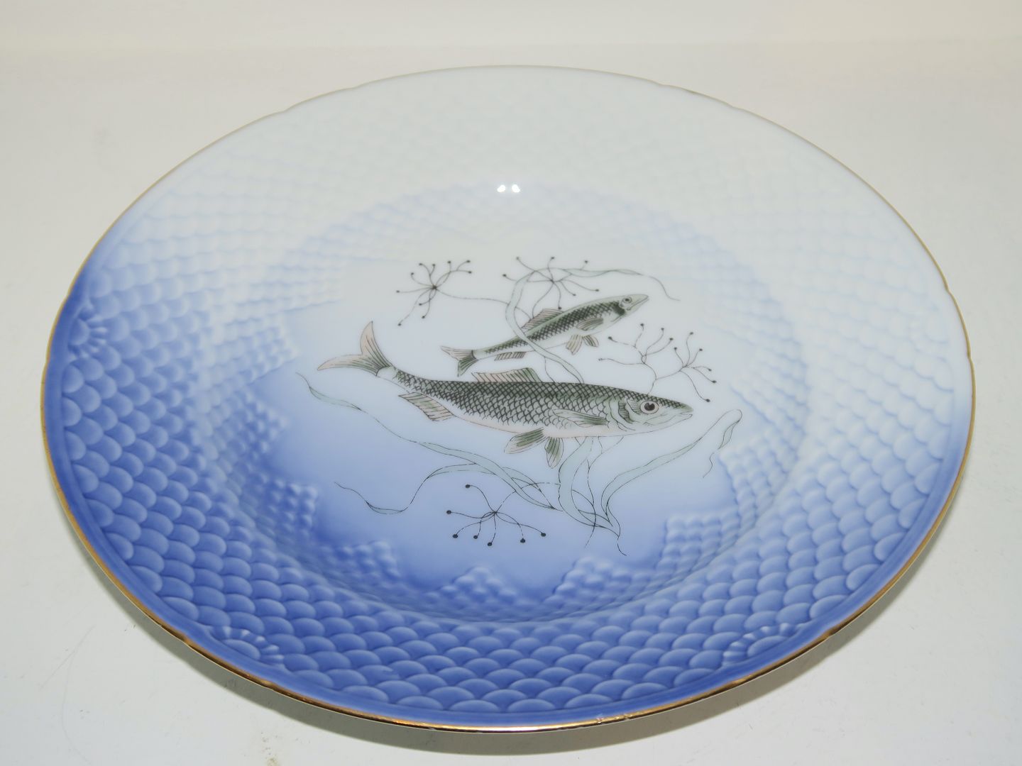 Bing & Grondahl Seagull with gold edge, fish plate number 1: Herring (Sild).