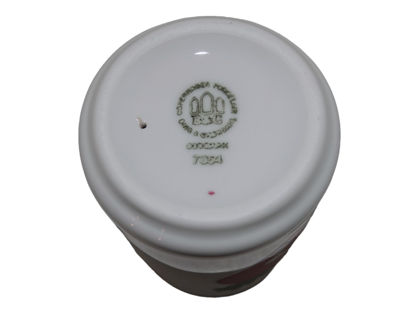 Bing & Grondahl Christmas candle light holder with red braided heart. Decoration number 7354. Factory third. Height 7.5 cm. Perfect condition with no chips, cracks or repairs.