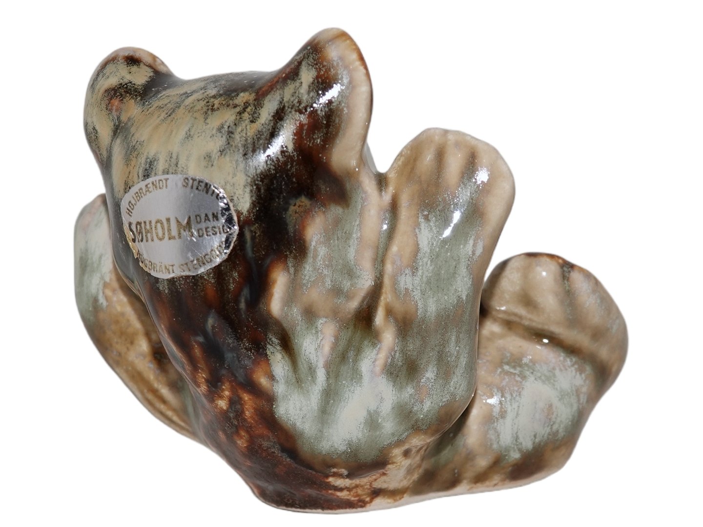 Soholm art pottery figurine, bear cub playing.