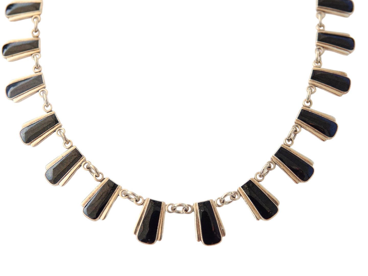 Volmer Bahner & Co sterling silver, gilded necklace with black enamel. Hallmarked "VB STERLING DENMARK". Volmer Bahner & co was a silversmith in Copenhagen from 1962 until 1987. Length 42.0 cm. Excellent condition.