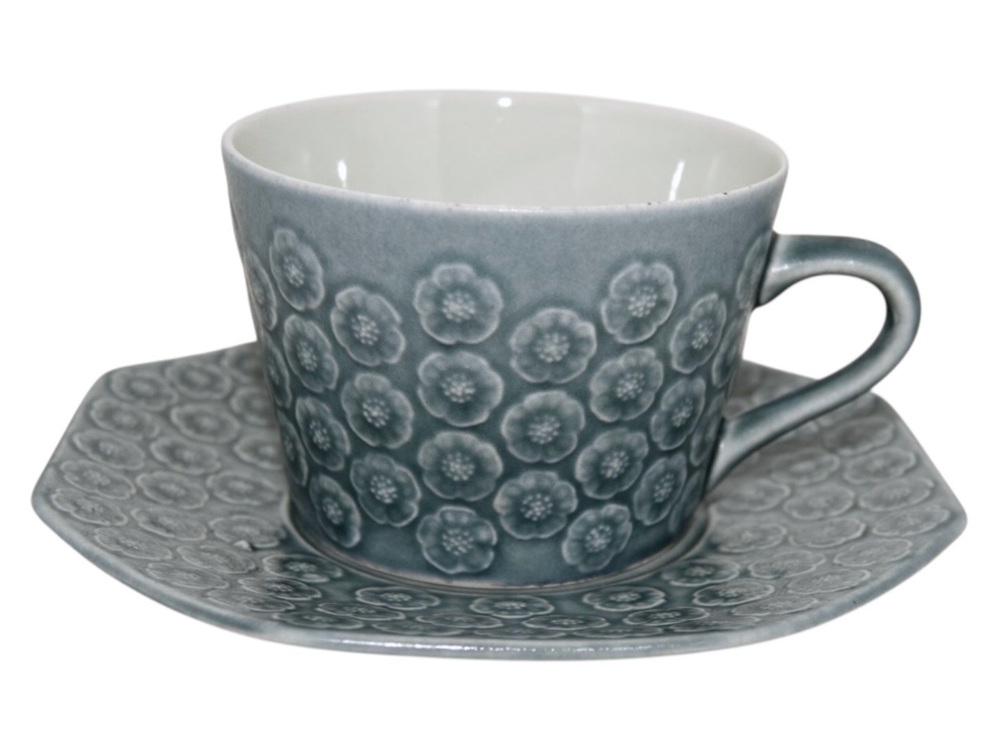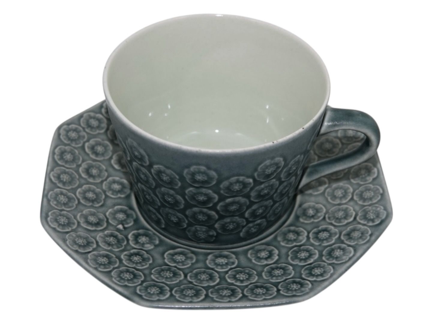 Kronjyden, Azur stentøj, kop med tilhørende underkop. Designet af Jens Harald Quistgaard. Diameter of the cup is 8.7 cm. Perfekt stand uden fejl.