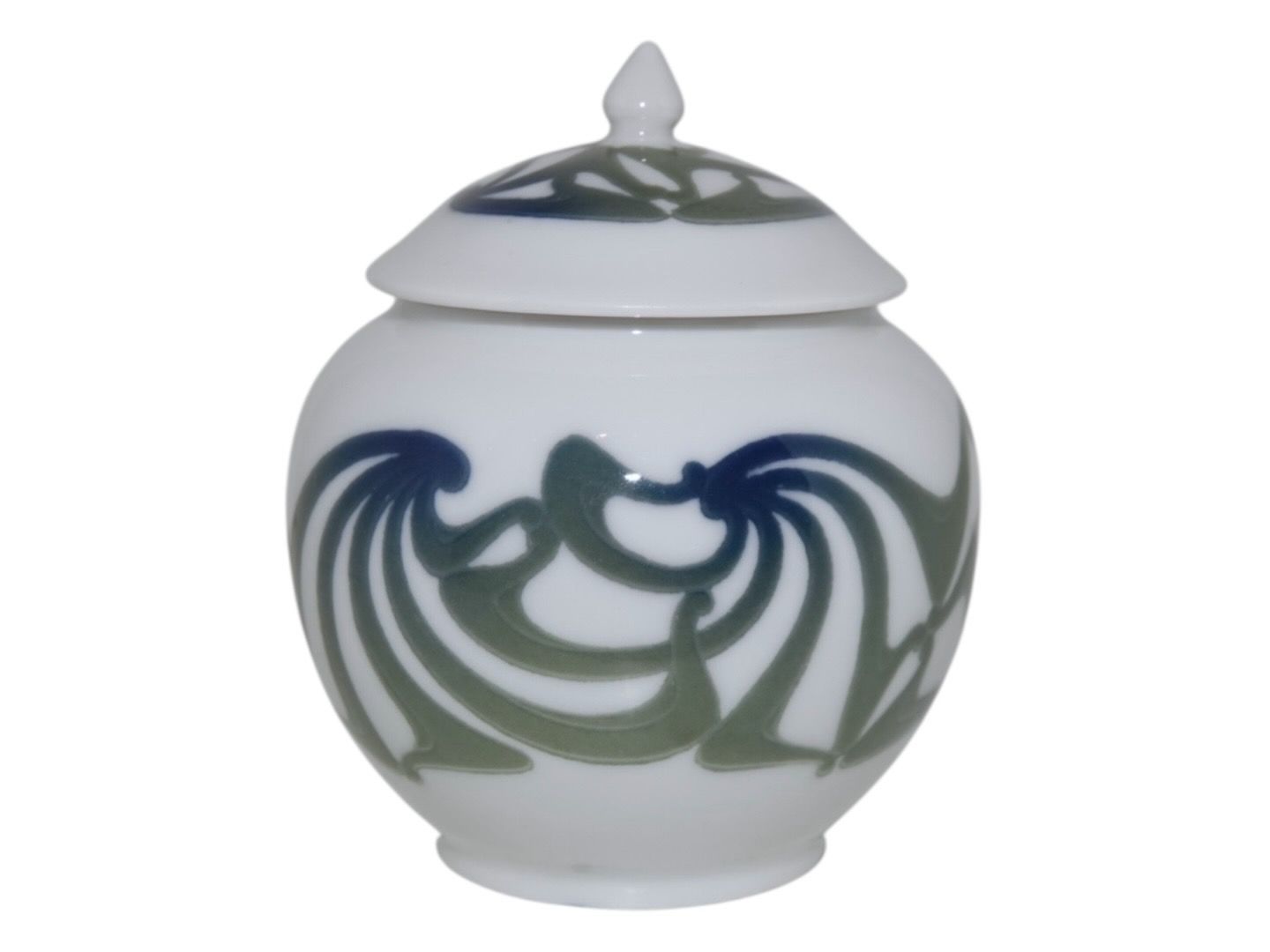 Bing & Grondahl small Art Nouveau bowl with green and blue decorations.