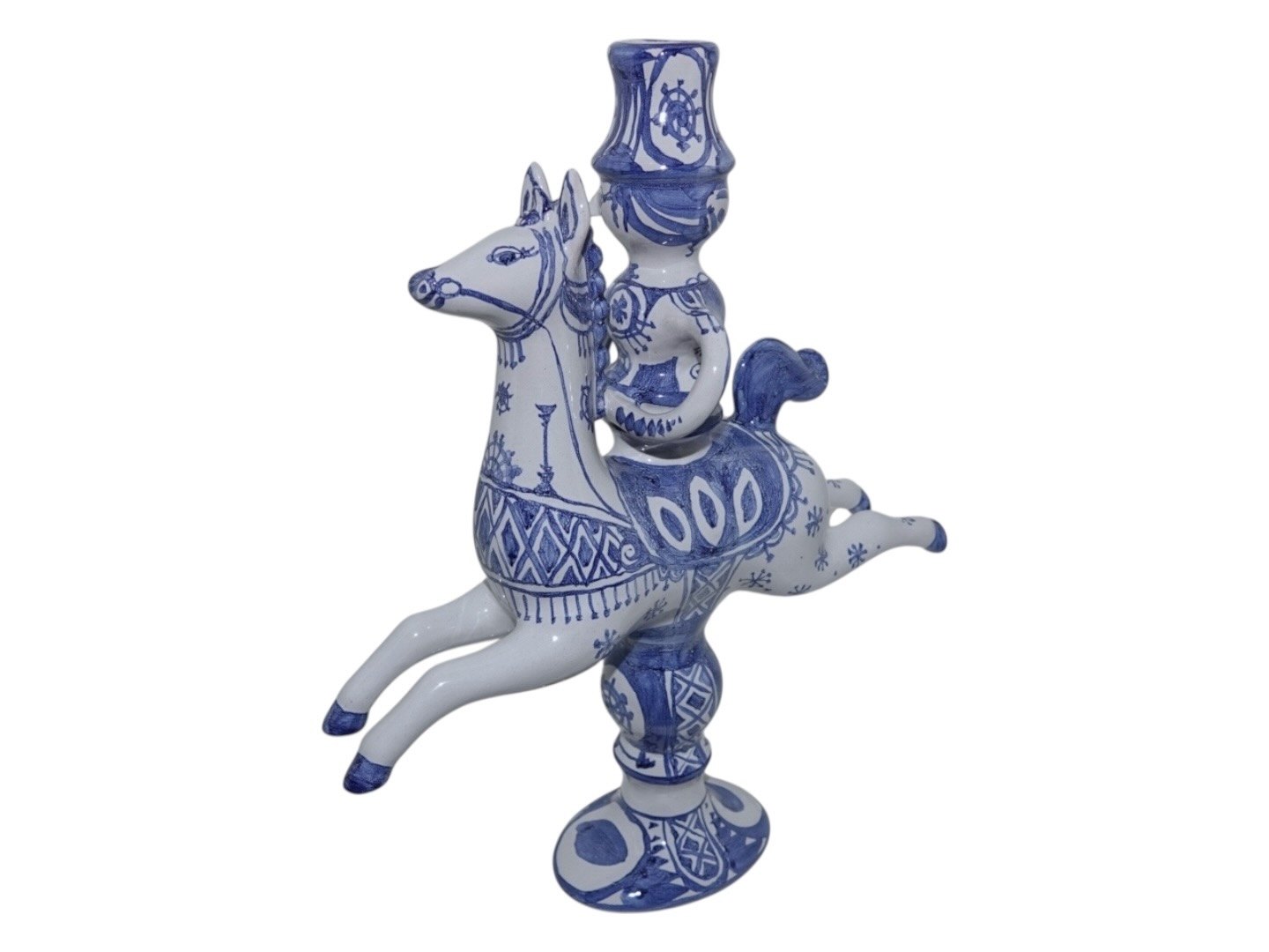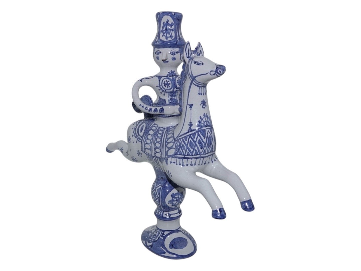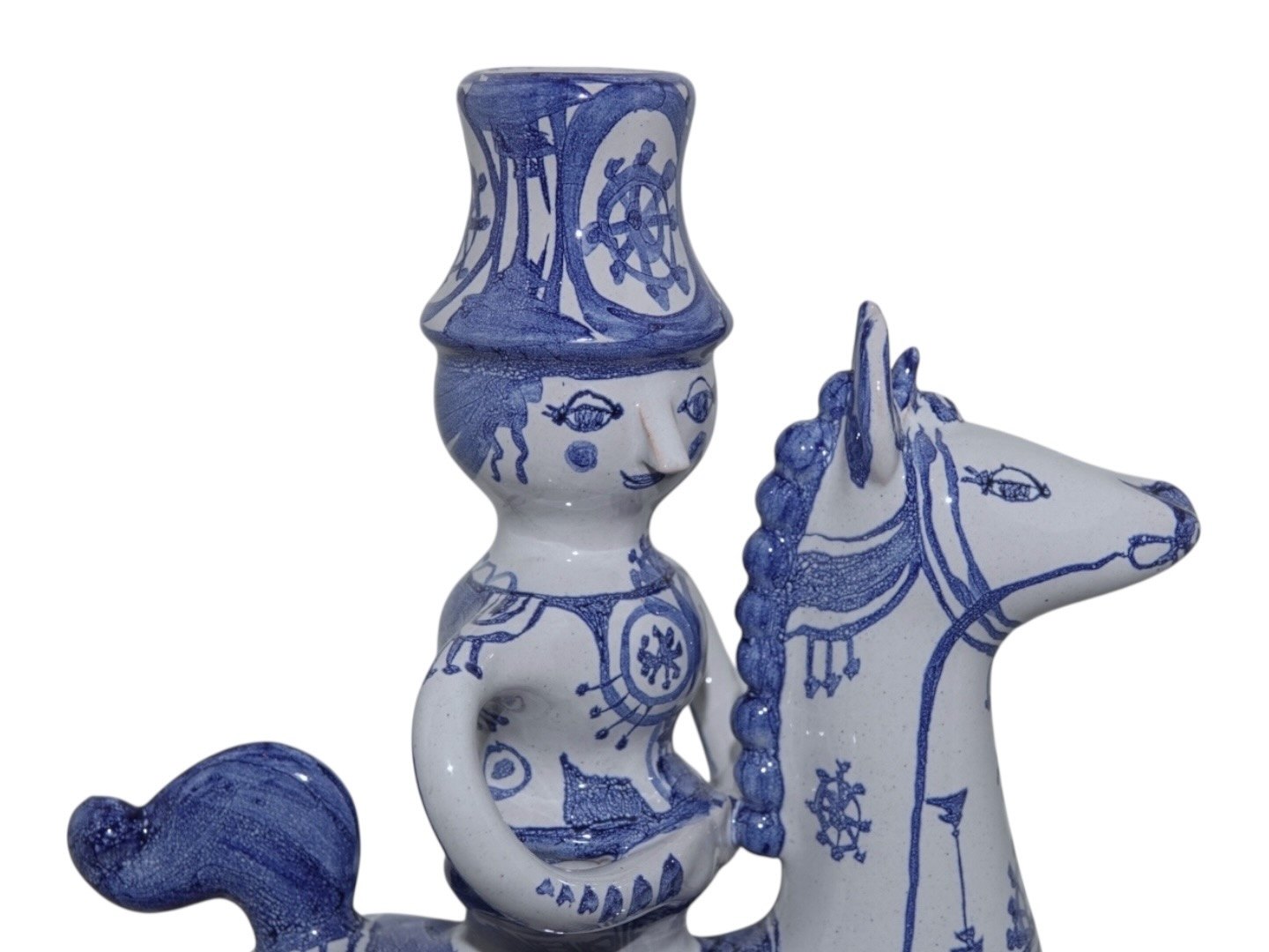 Bjorn Wiinblad art pottery figurine, man on horse - candlelight holder. Design number L4. This was produced in 1979. Height 31.8 cm., length 27.6 cm. Perfect condition.