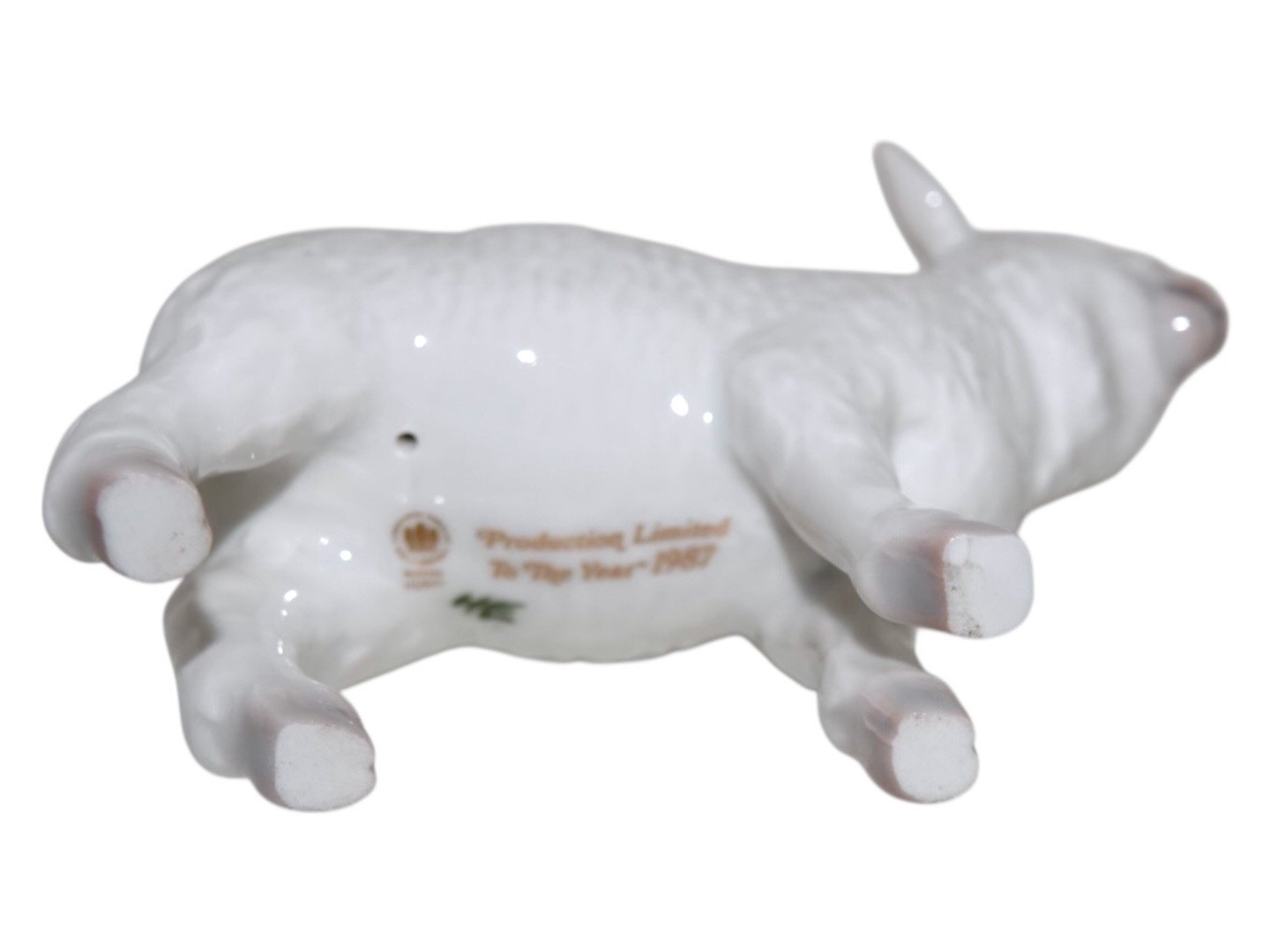 Bing & Grondahl year figurine from 1987, white lamb. Factory first. Length 10.0 cm.. Perfect condition with no chips, cracks or repairs.