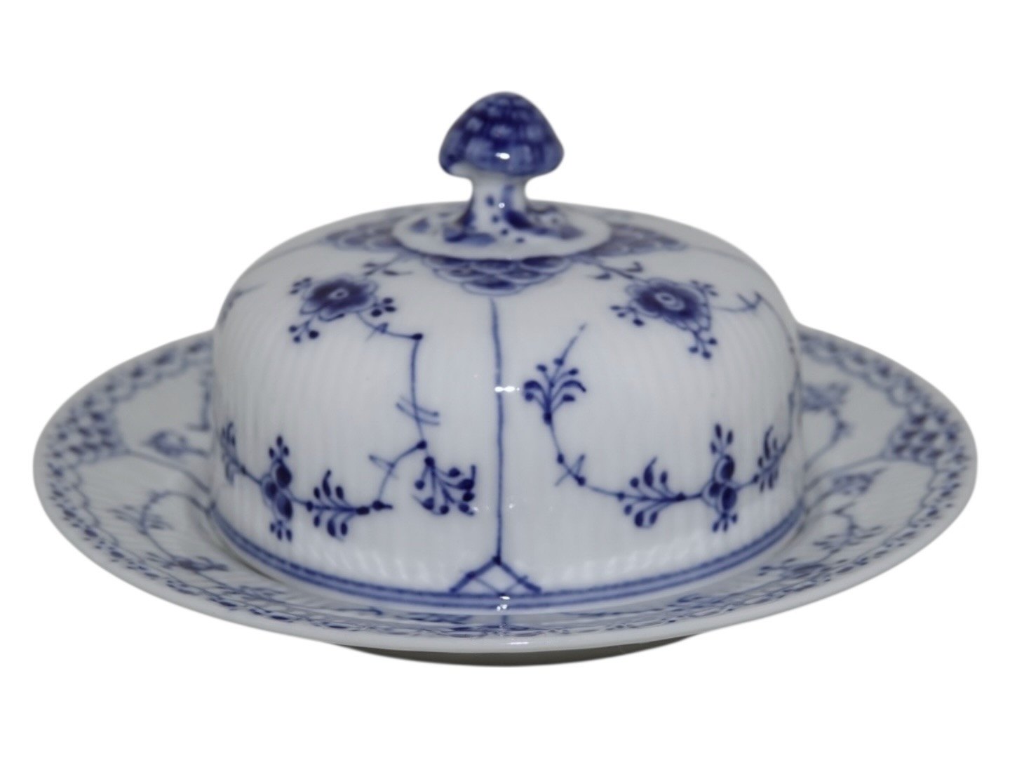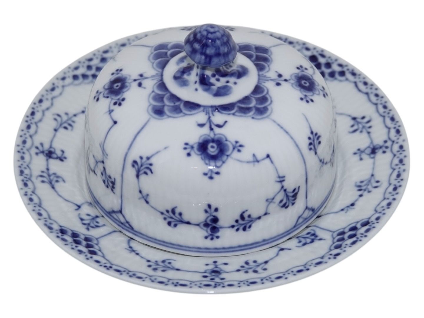 Royal Copenhagen Musselmalet Halvblonde, smørskål med underfad.