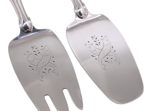 Georg Jensen sterling silver Old Danish (Dobbeltriflet), large fish serving set. This was produced after 1945. Length 21.5 cm. Perfect condition with no engravings. The price is for both pieces.