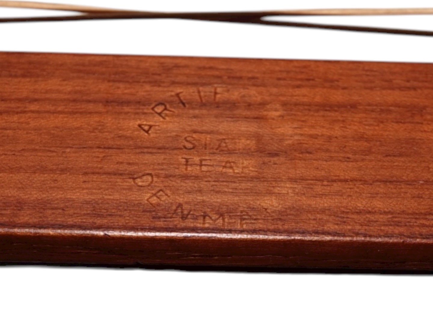Artiform Denmark, Siam Teak tray with brass and strings. It is made in a high quality. Hallmarked "ARTIFORM SIAM TEAK DENMARK". Measures 29.5 by 23.0 cm. Excellent condition.