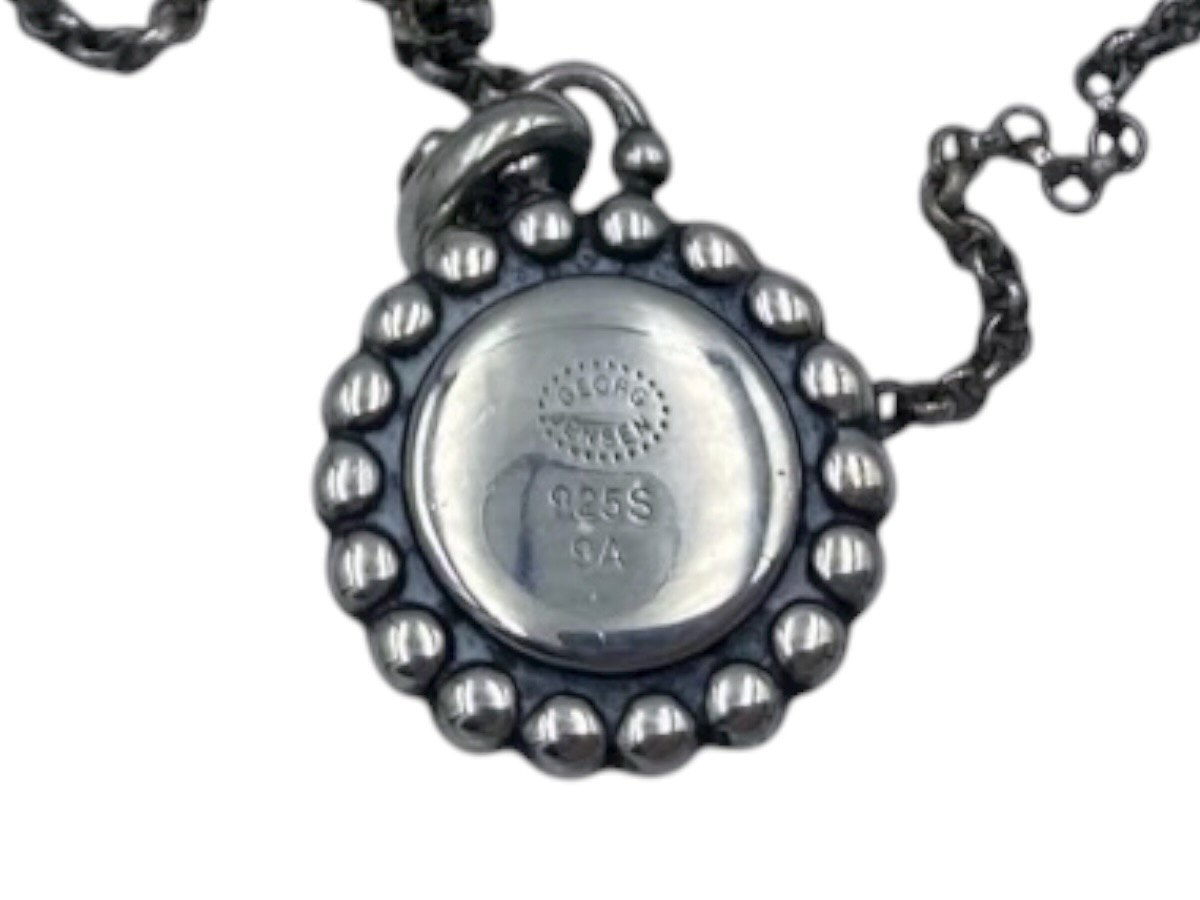 The necklace measures 46.0 cm., the pendant measures 1.2 cm. in diameter.