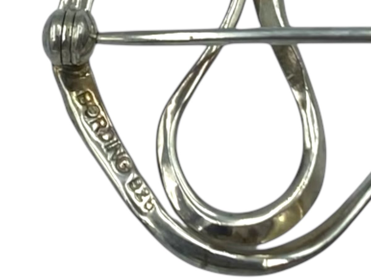 Mikkel Bording Pedersen sterling silver, modern brooch in shape of a heart. Hallmarked "BORDING 925S". Mikkel Bording Pedersen was a silversmith in Hjorring from 1997 until 2000. Measures 2.5 by 2.2 cm. Excellent condition.