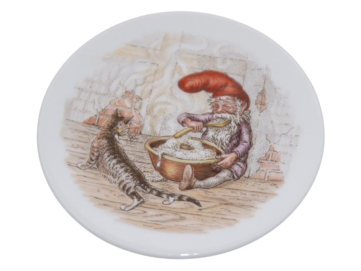 Small dish with gnome and cat 10.2 cm.