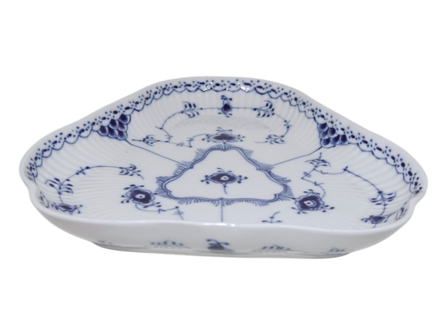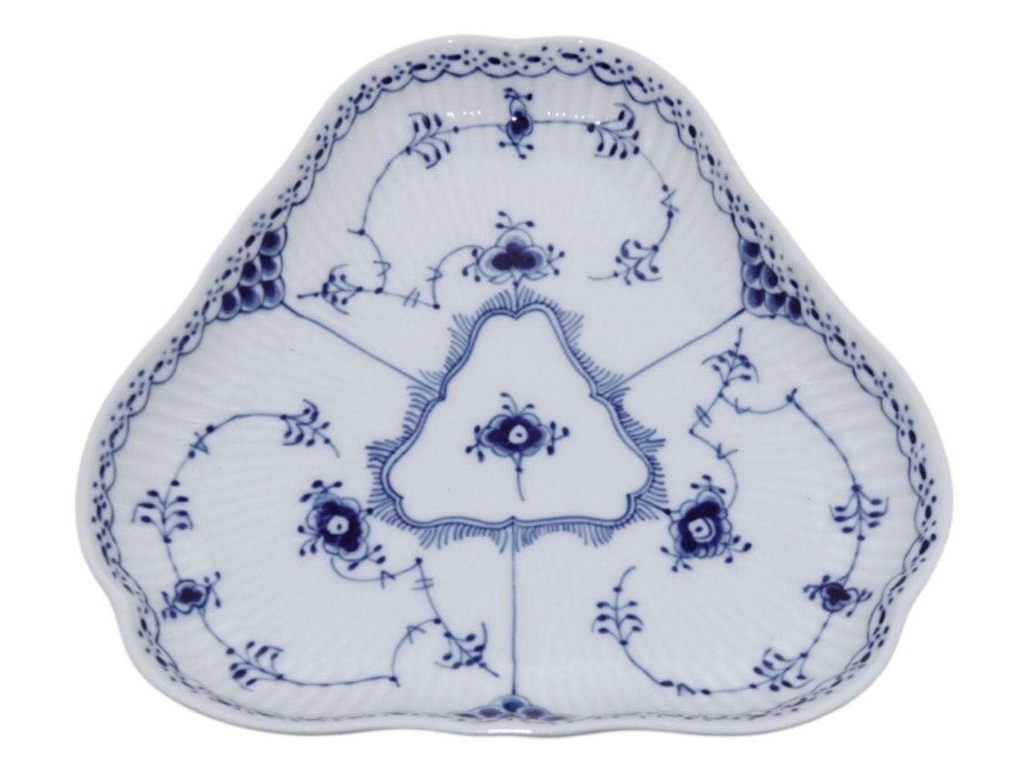 Royal Copenhagen Blue Fluted Half Lace, triangular dish.