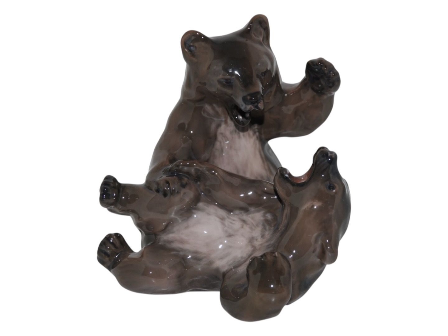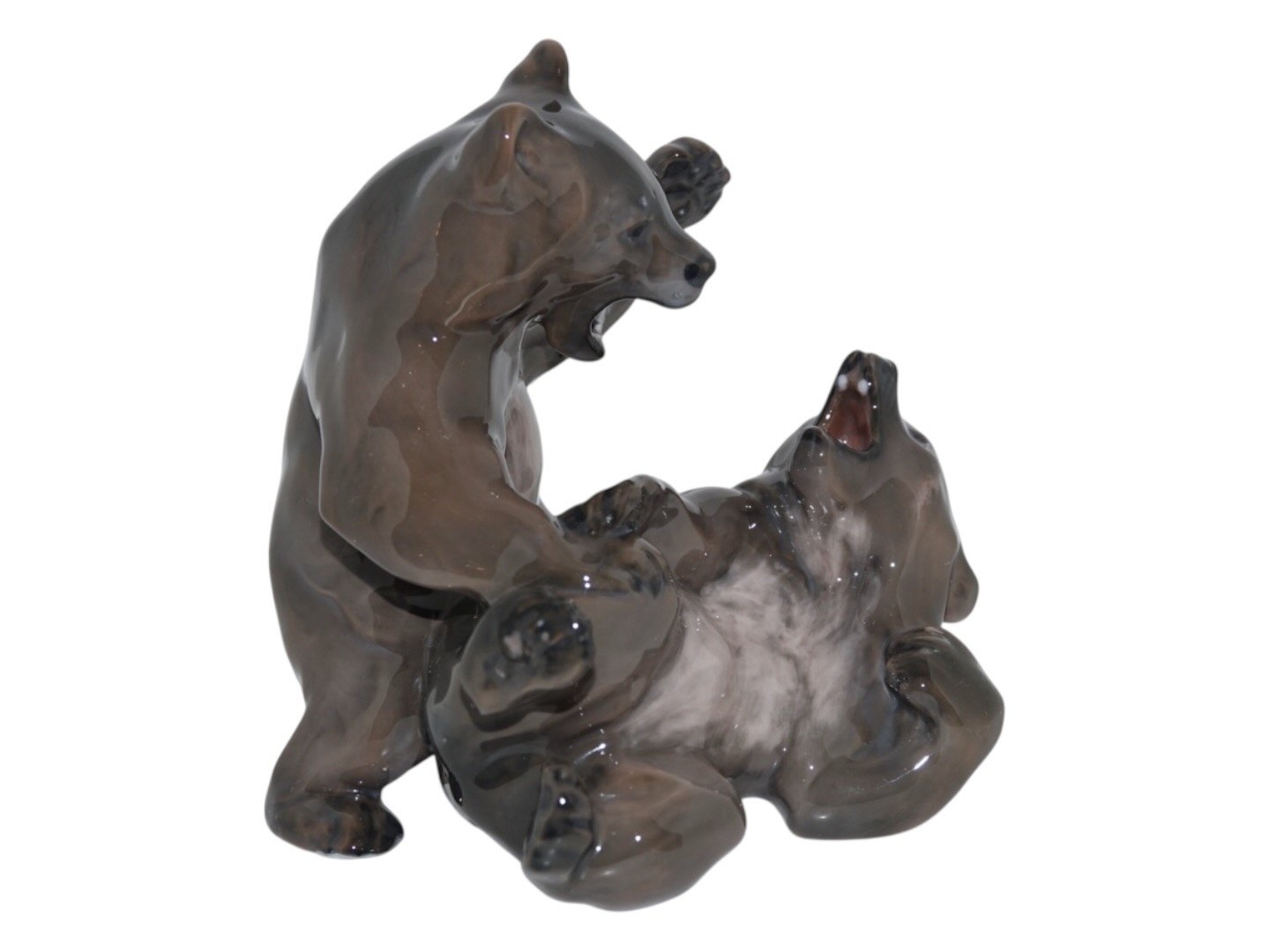Royal Copenhagen figurine, two brown bears fighting. Rarely seen in this color.