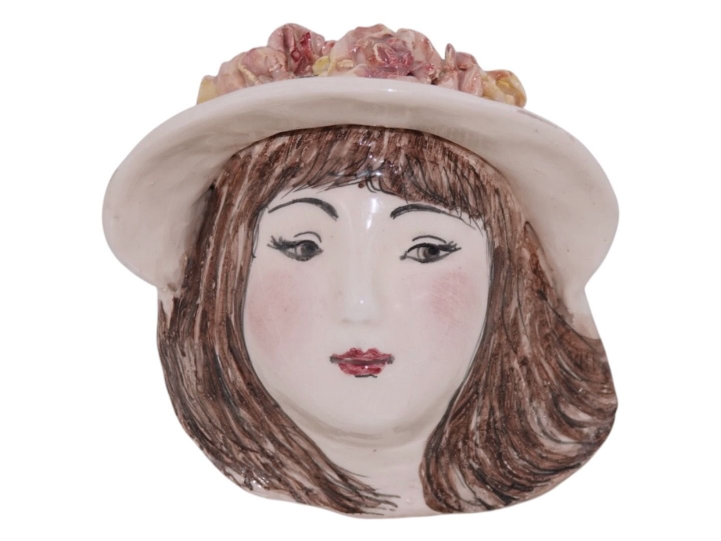 Doreen Middelboe art pottery, wall-hanged lady with flower hat figurine.