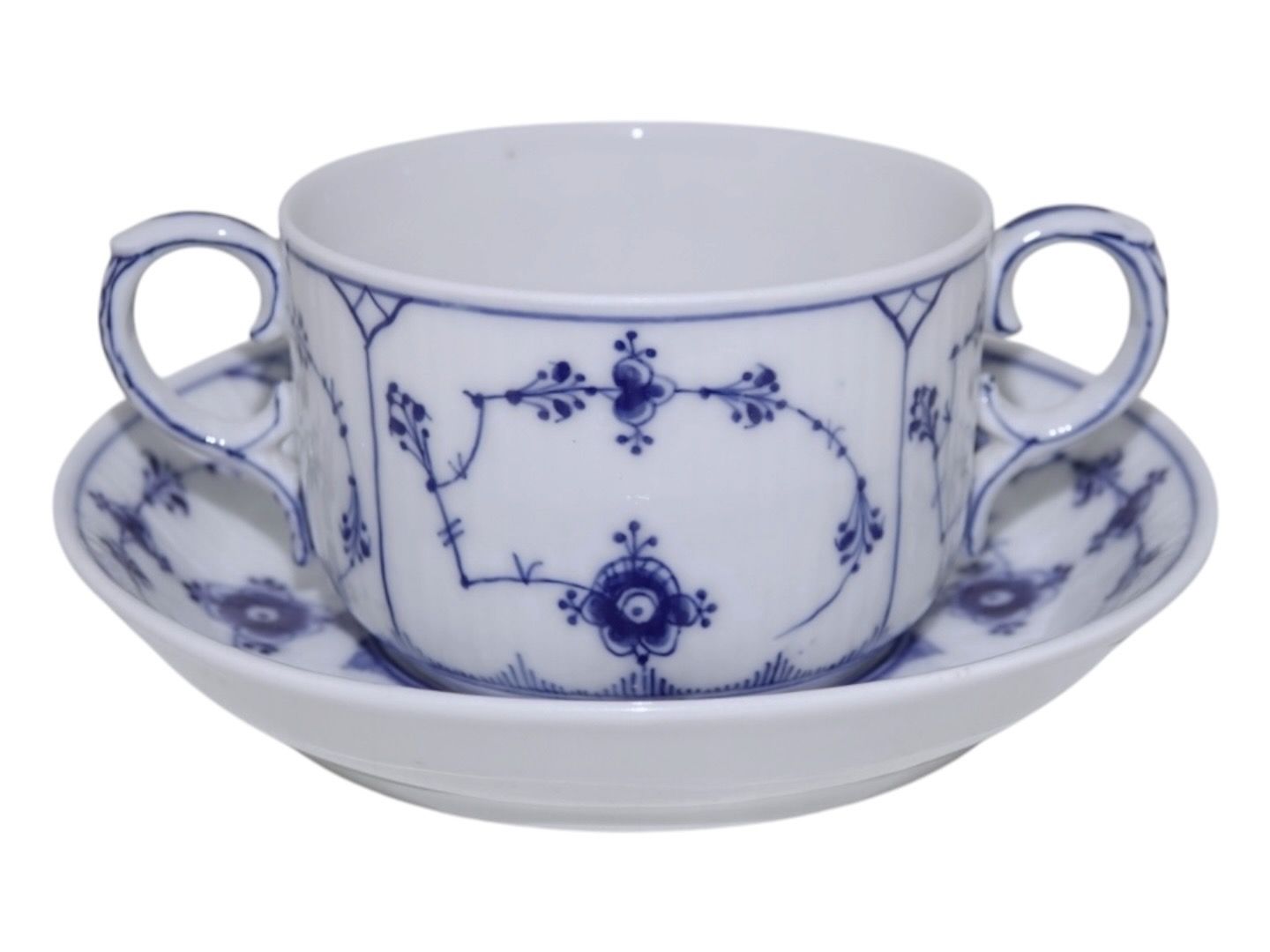 Royal Copenhagen Blue Fluted Plain, small soup cup without lid but with matching saucer.