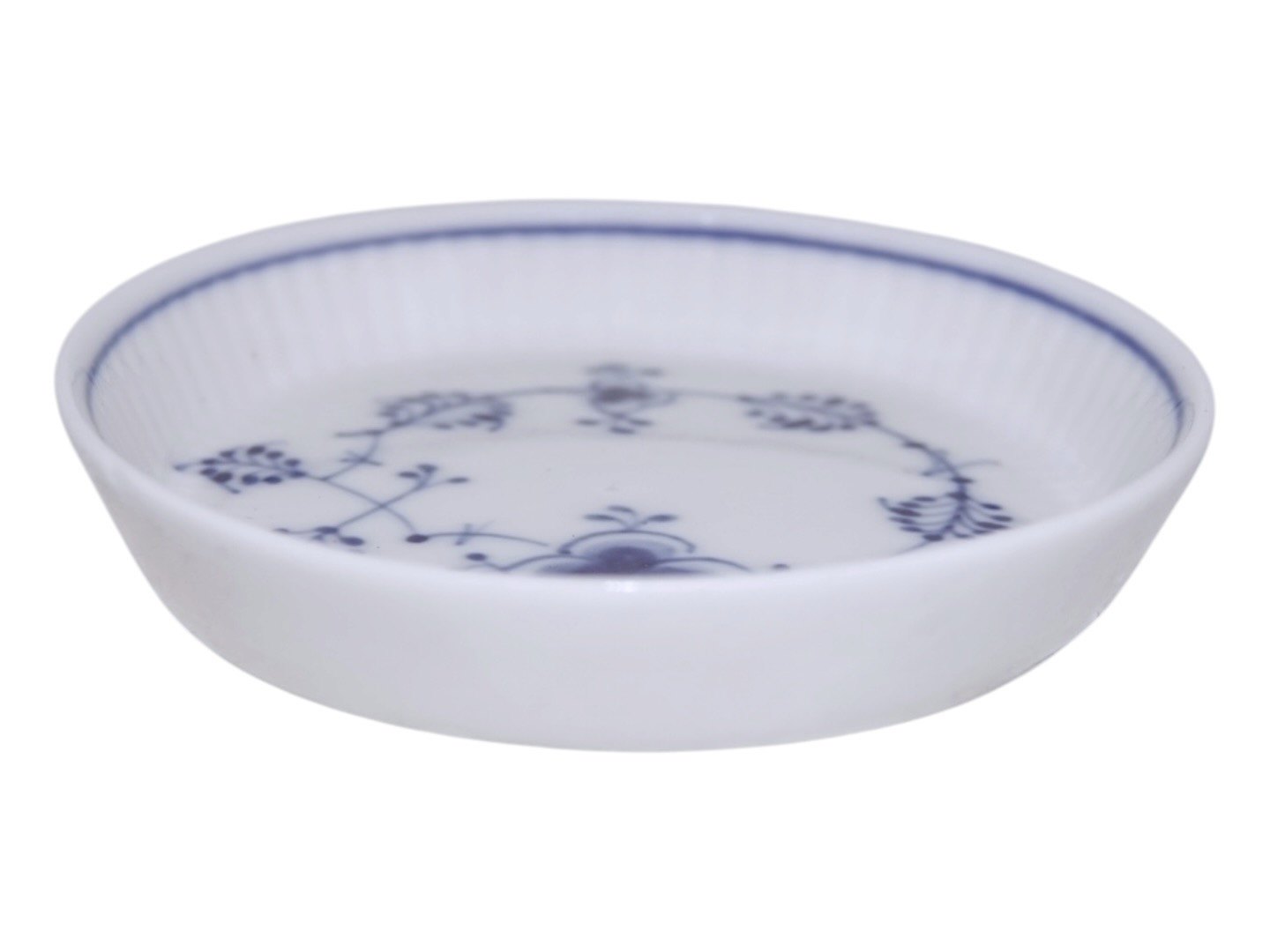 Royal Copenhagen Blue Fluted Plain, small high edged tray. Decoration number 1/2185. Factory first. Diameter 9.0 cm. Perfect condition with no chips, cracks or repairs.