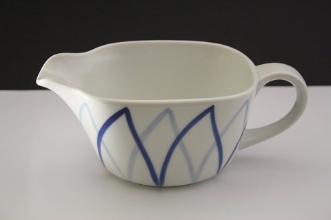 Text available in Danish: Harlekin/Blå flamme Dan-ild Lyngby. Design Axel Brüel i 1958. Ildfast porcelæn blev solgt under sloganet fra ild til bord.