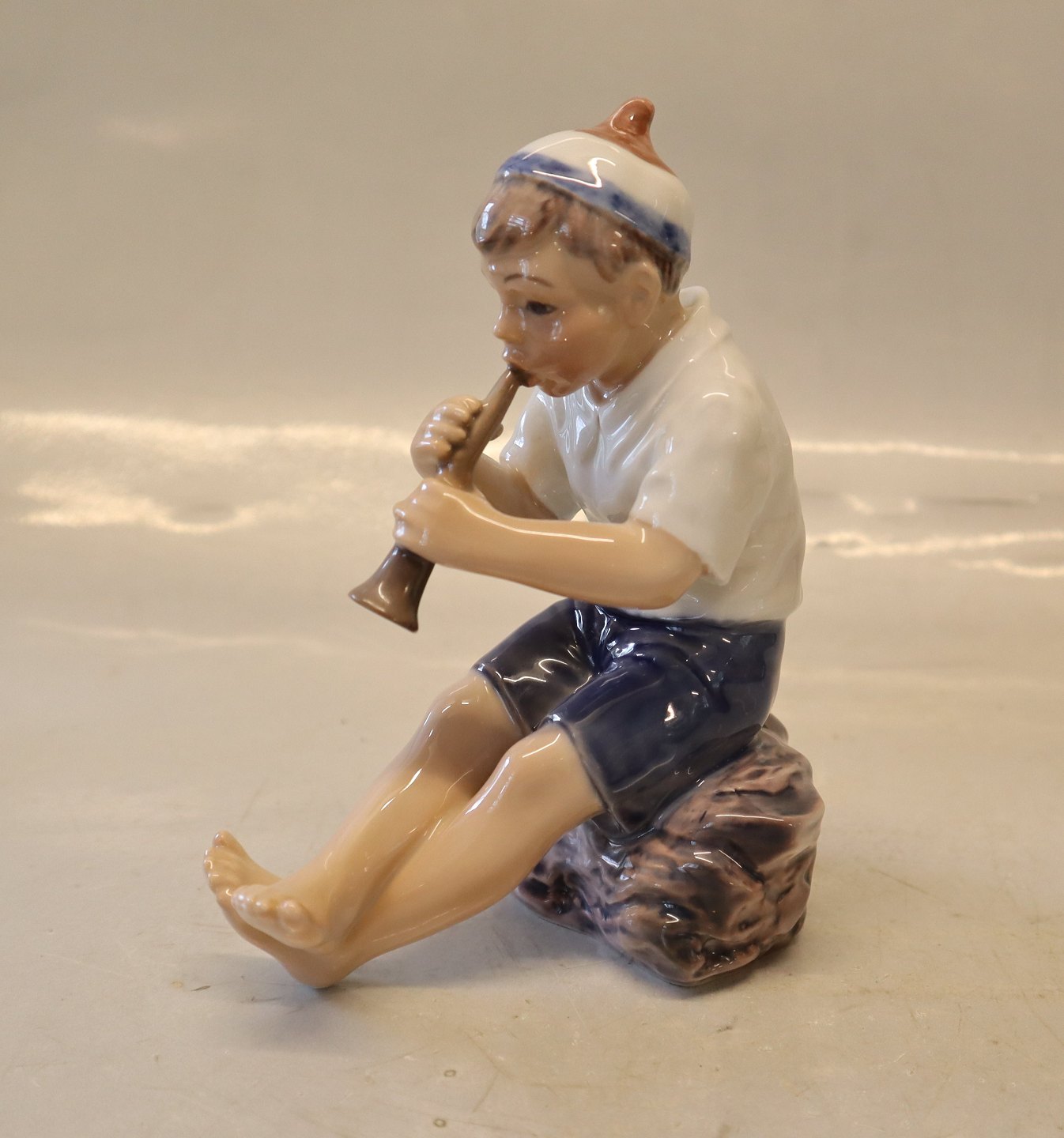 Dahl Jensen 1218 Boy with Trumpet (DJ) 14 cm Marked with the Royal Crown and DJ Copenhagen. 2nd In nice and mint condition Dahl Jensen Worked first for Bing & Groendahl B&G from 1897 Horn