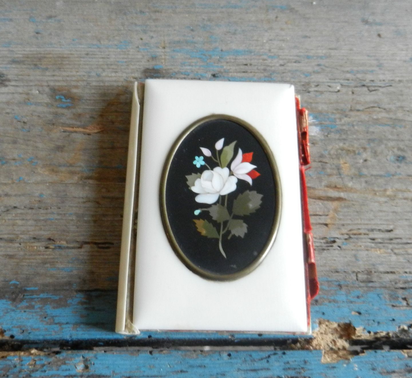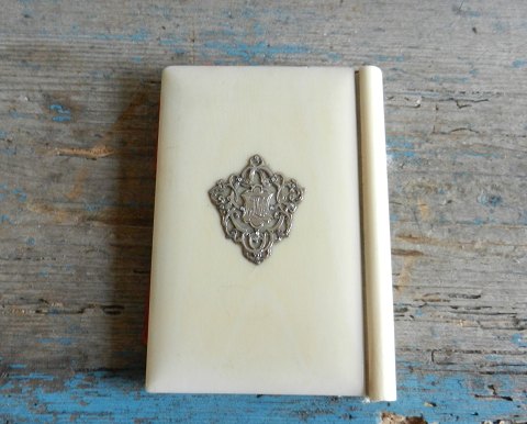Unik 1800tals Balkorts bog i ben med medaljon af Pietra dura og initialer (MJ) graveret i sølv på bagsiden.