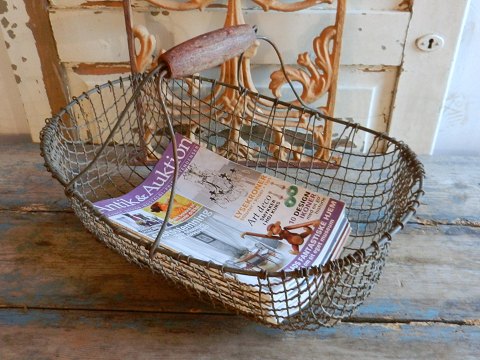 Gammel trådkurv med træ håndtag