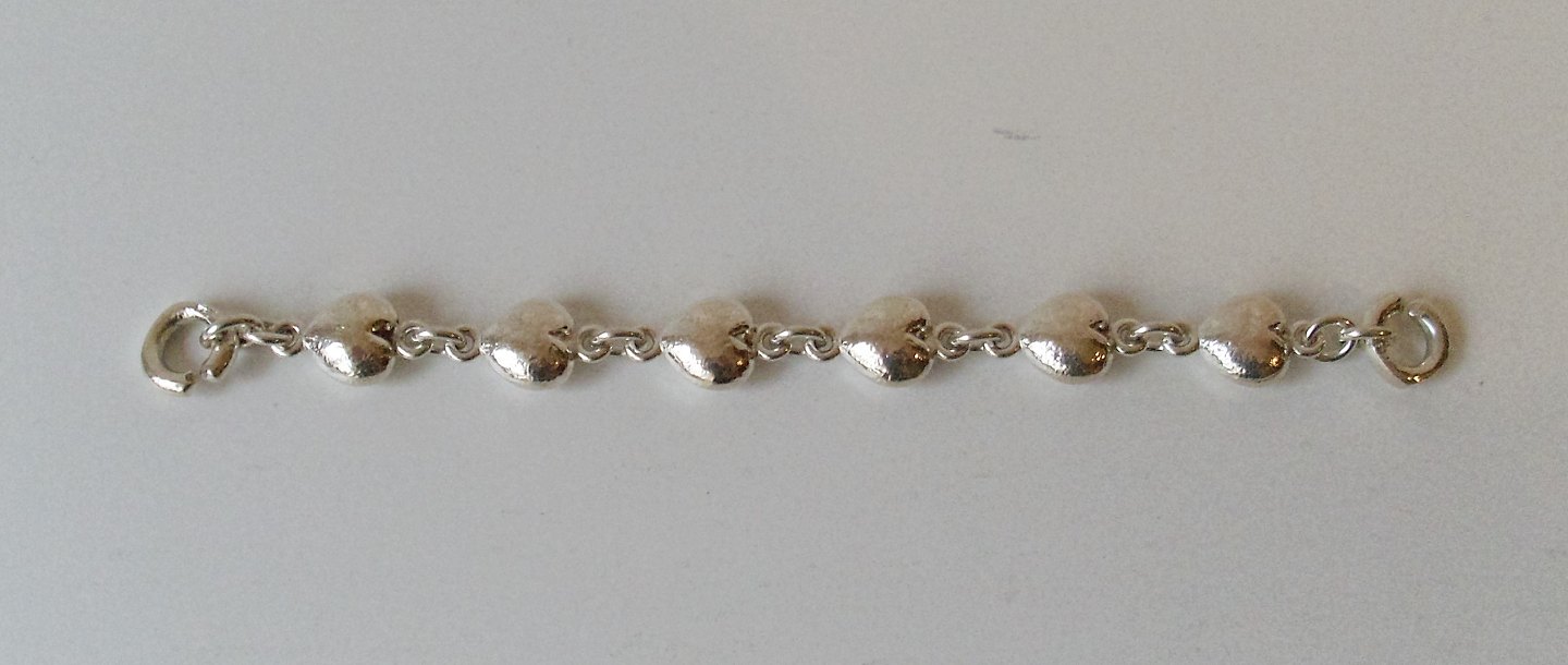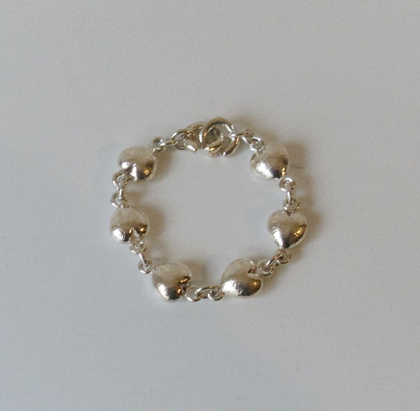 Meget smukt custom made hjerte armlænke i massivt hammerslået sterlingsølv, udført af Frits Heiring Sørensen.