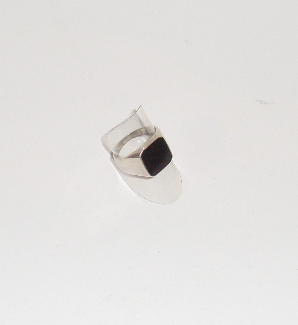Herrering i sterlingsølv med onyx