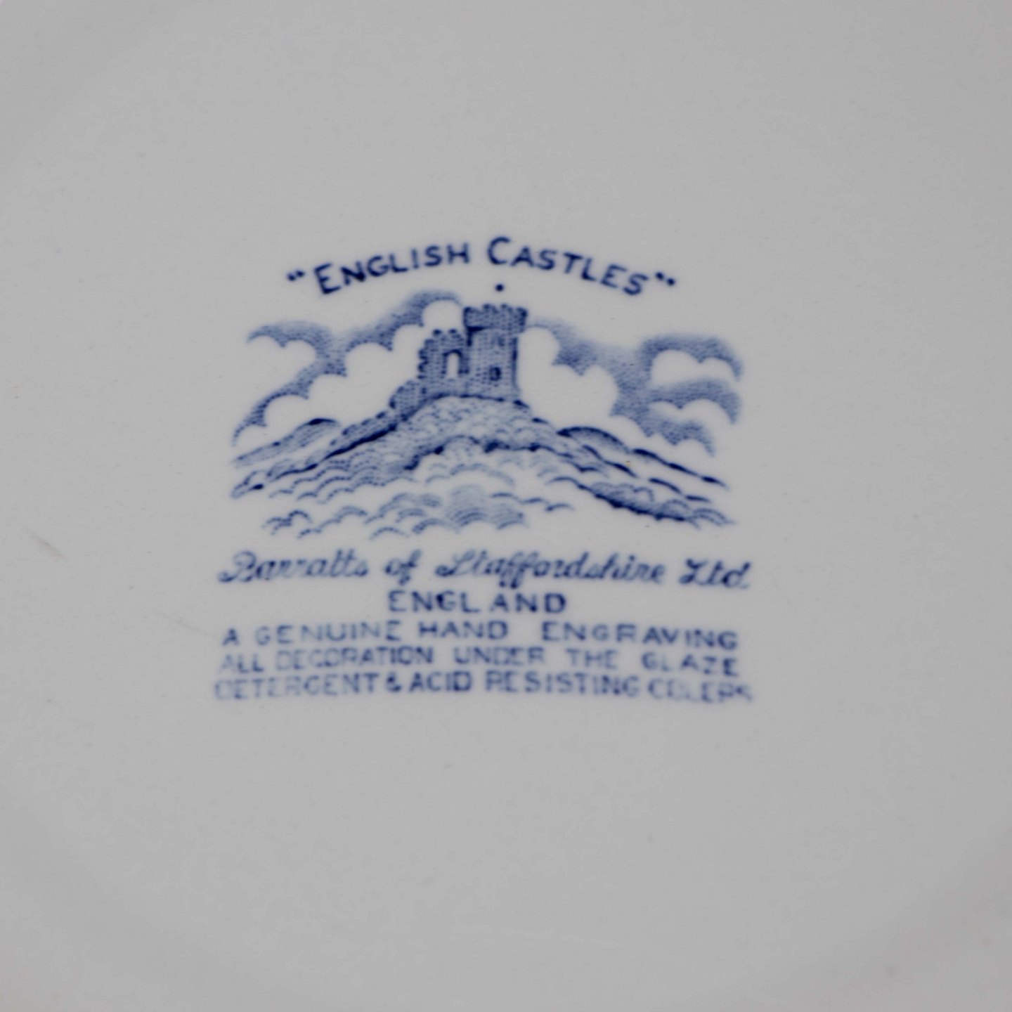 Dyb tallerken i engelsk fajance fra stellet English castles