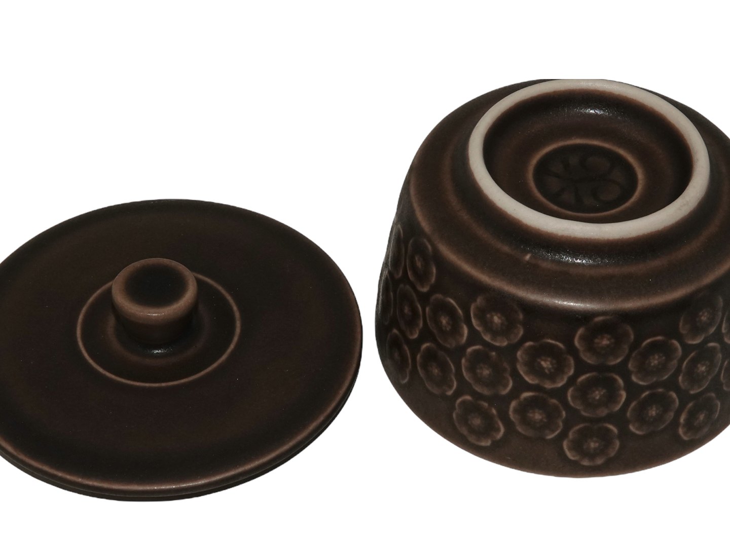 Kronjyden/Bing & Grondahl Umbra stoneware, lidded sugar bowl.