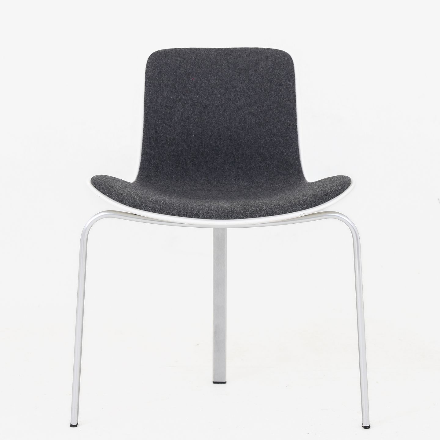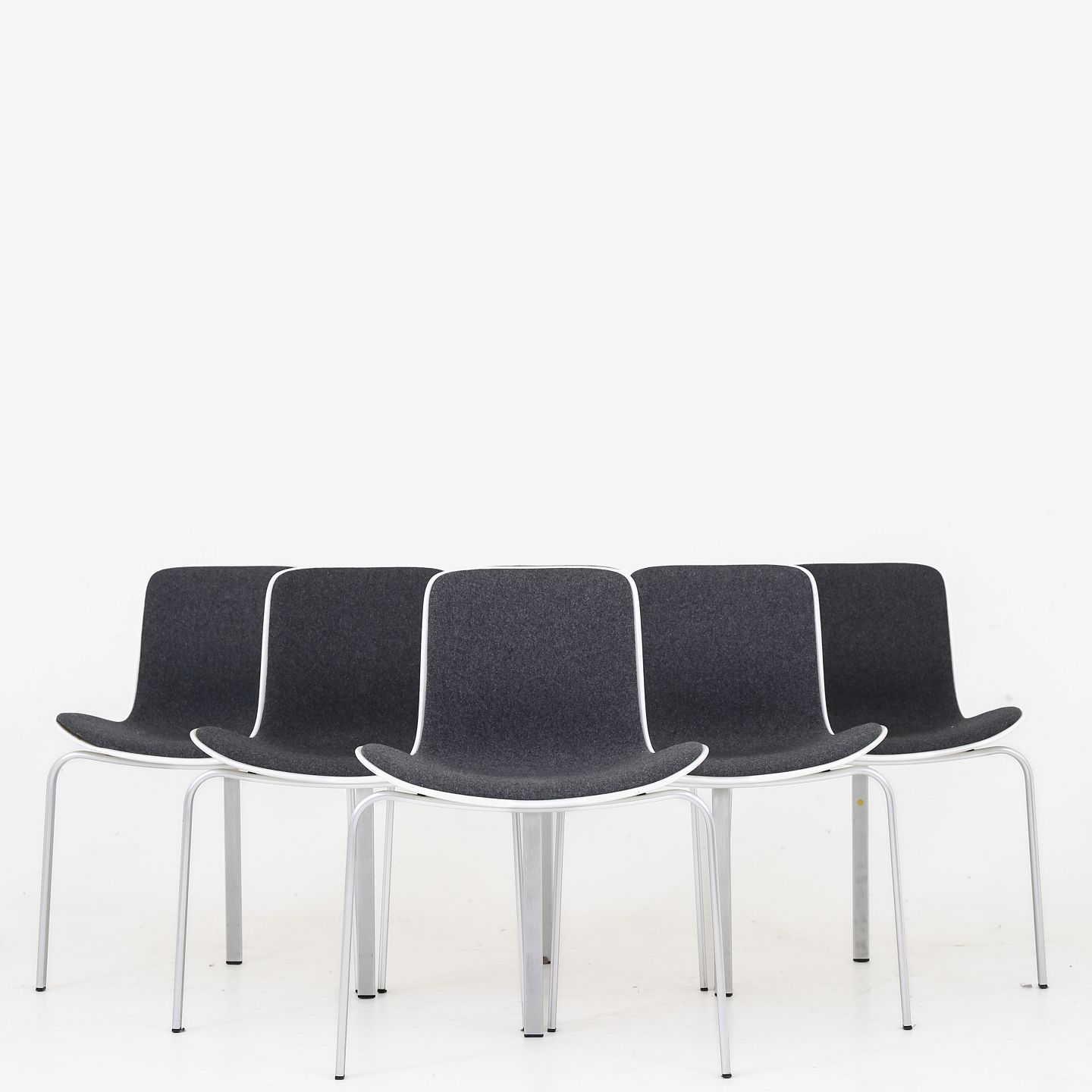 PK 8 - Set of 6 dining chairs front upholstered in grey wool.