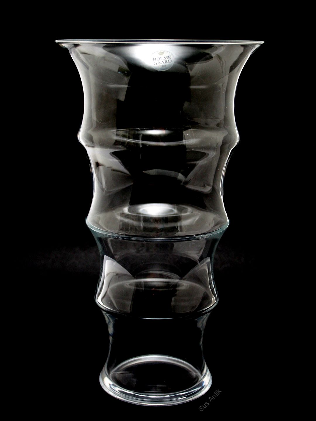 Text available in Danish: Stor klar Karen Blixen vase, Holmegaard