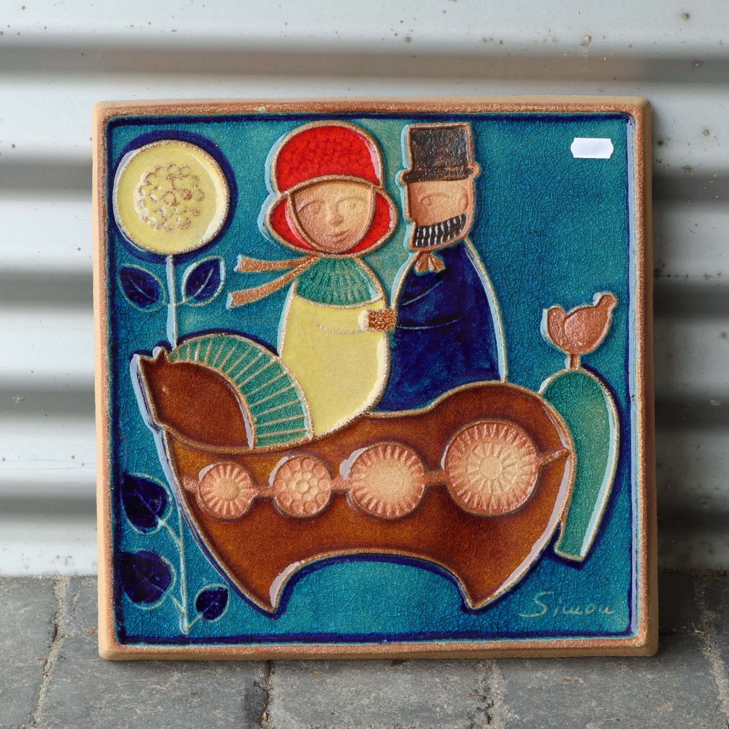 Relief af stentøj med motiv af en båd med 2 personer no. 3539
