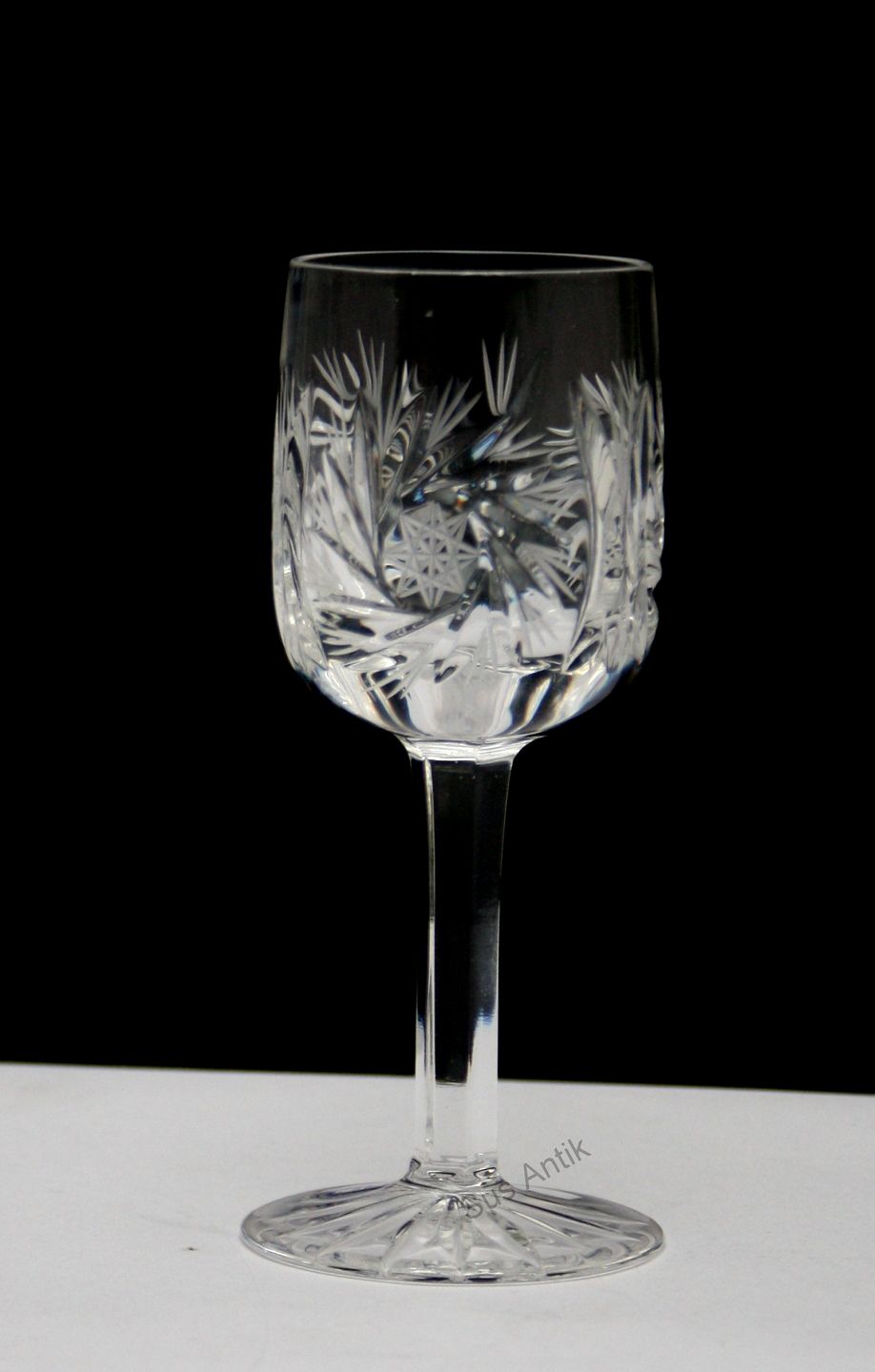Text available in Danish: Lyngby glasværk, Granada, Portvin. Mundblæst og håndslebet 24 % Bøhmisk blykrystal med slibninger på kumme, slebet stilk og stjerneslebet fod. Importeret fra Tjekkiet i 1970'erne og solgt via Lyngby glasværk.