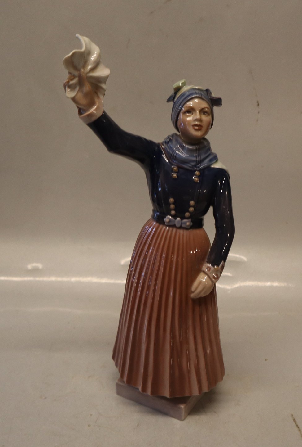 Dahl Jensen Marked with the Royal Crown and DJ Copenhagen 1325 Fanoe girl waving (DJ) 32 cm and mint condition National dress Fanø