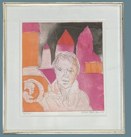 Lithograph, Wiliam Skotte Olsen in silver frame and passepartout.