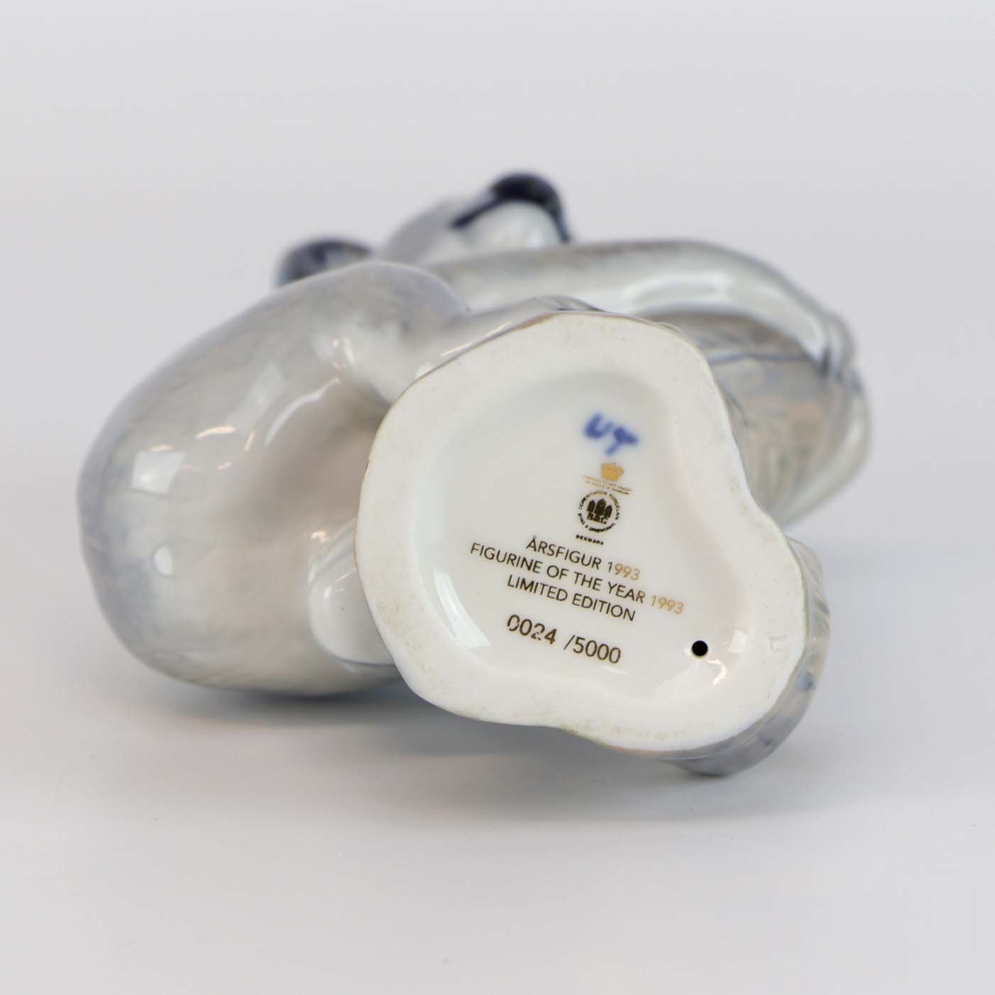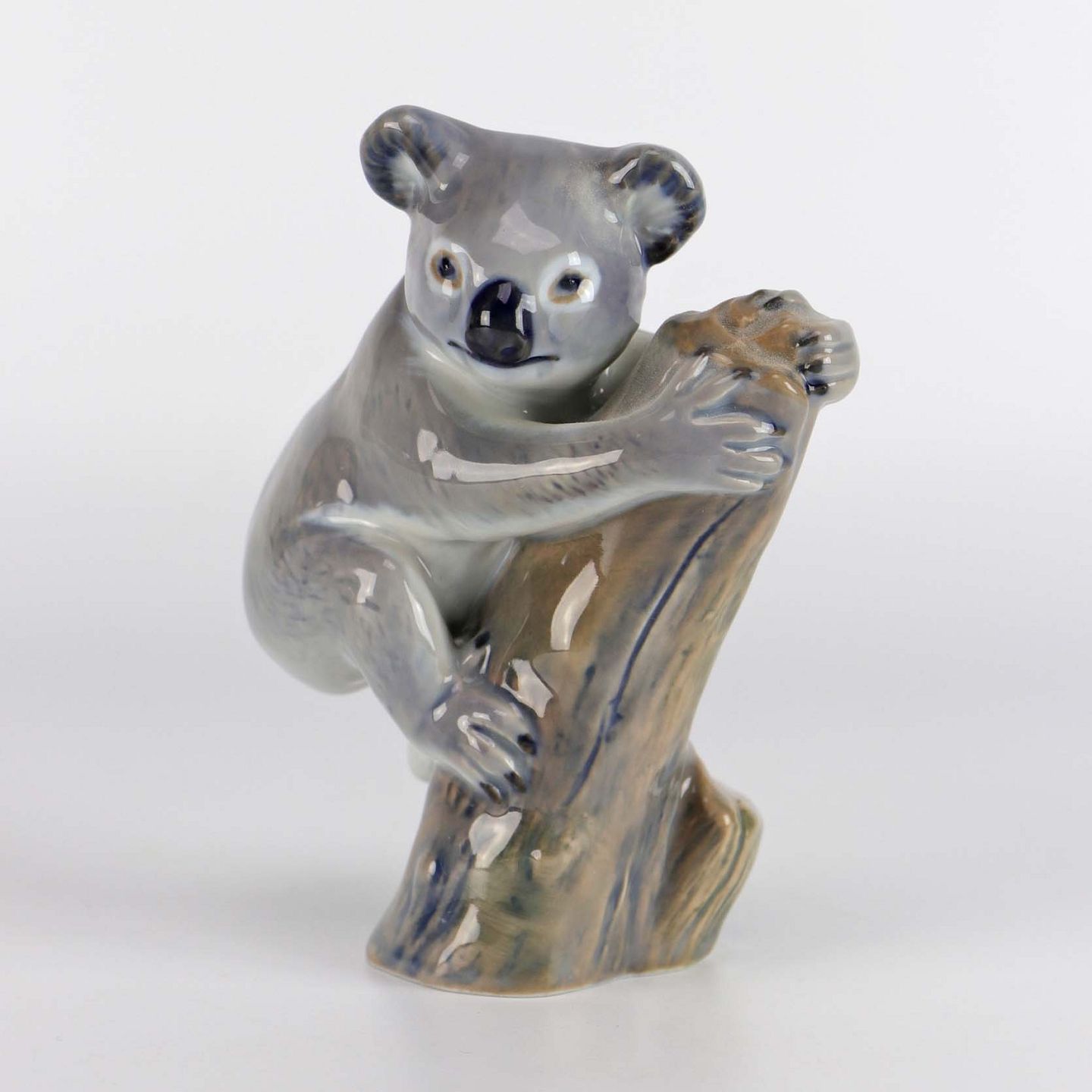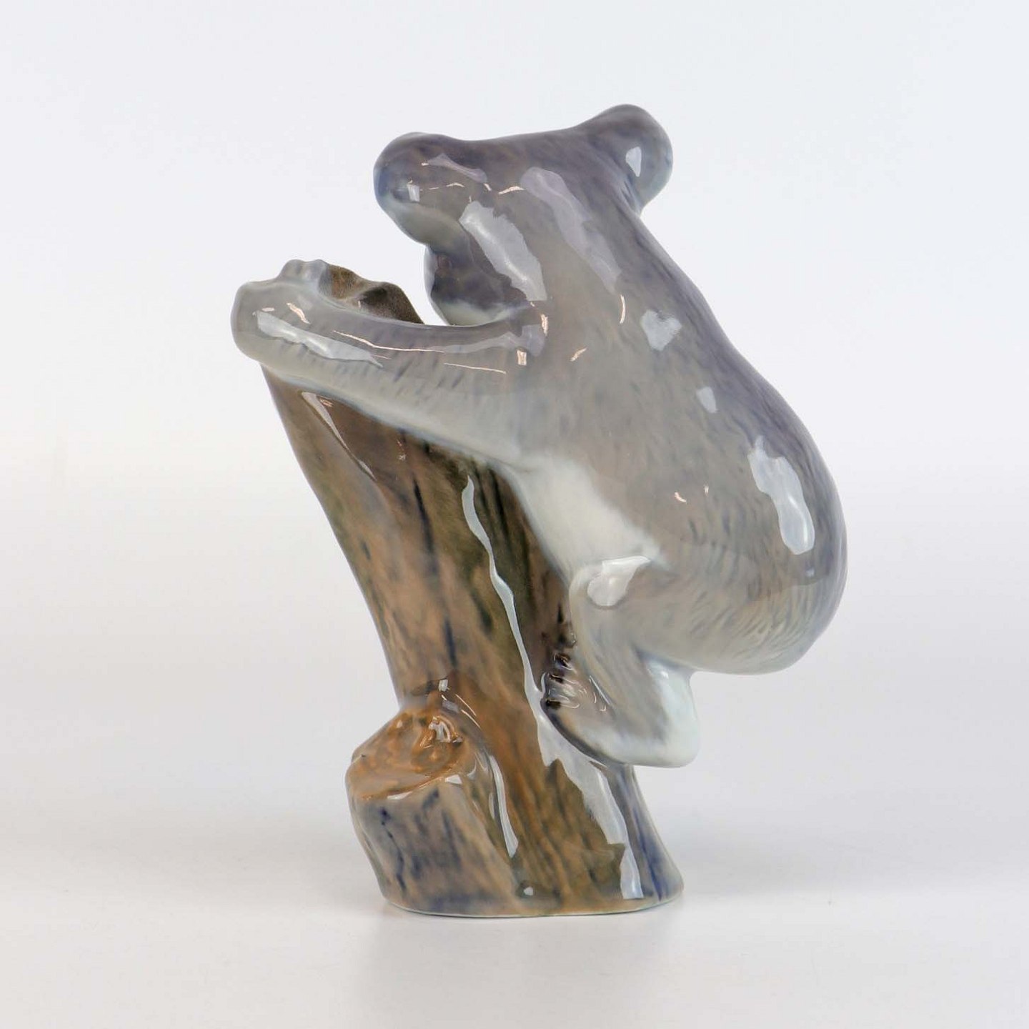 Årsfigur i porcelæn fra 1993, håndmalet med motiv koalabjørn på træstub nr 24/5000