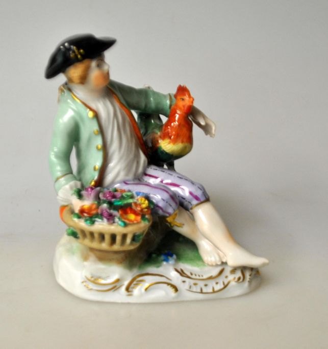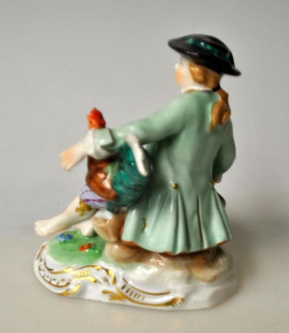 Porcelain figure of peasant boy with chickens, Potschappel, Dresden, Germany.