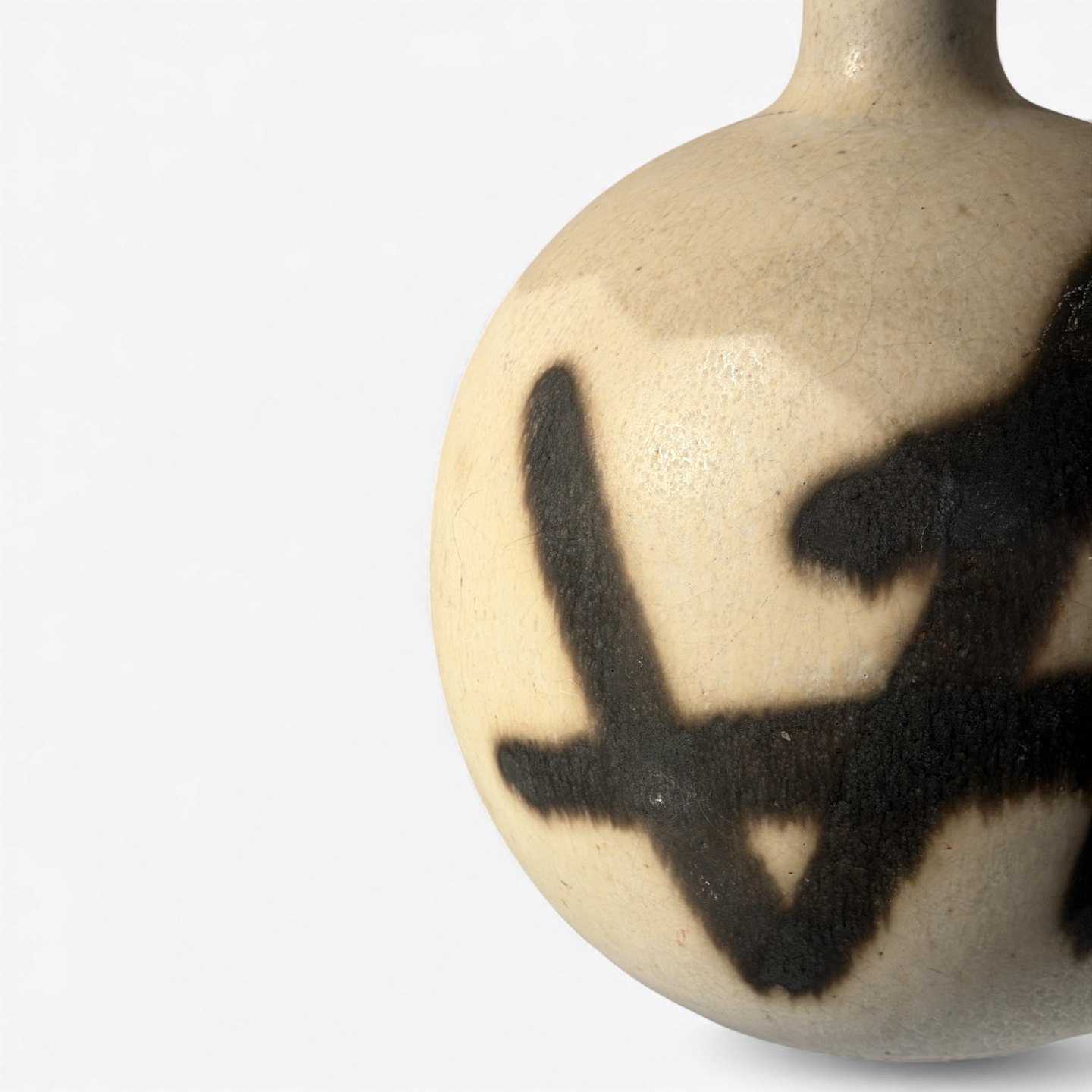 Table lamp in stoneware with black pattern.