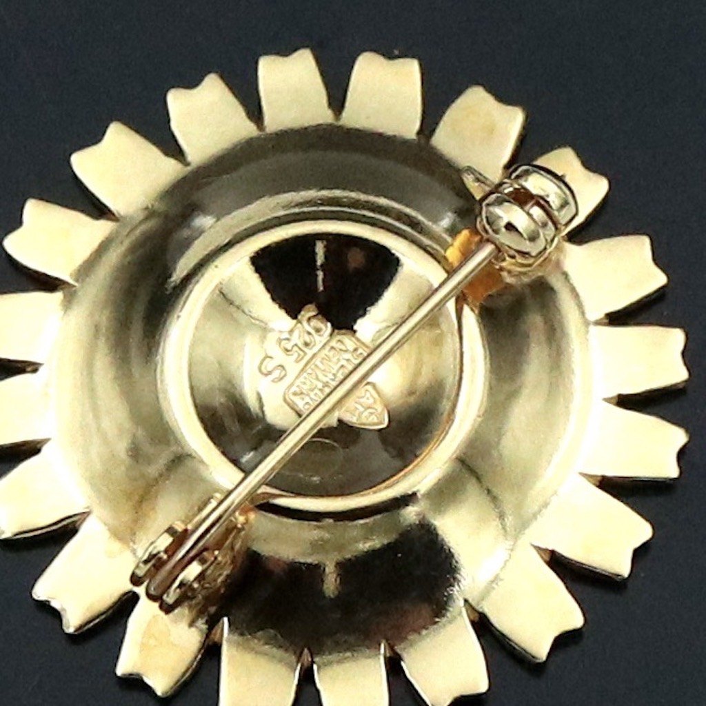 A. Michelsen. Gilded Sterling Silver Daisy Brooch with Royal Blue Enamel - 33mm.