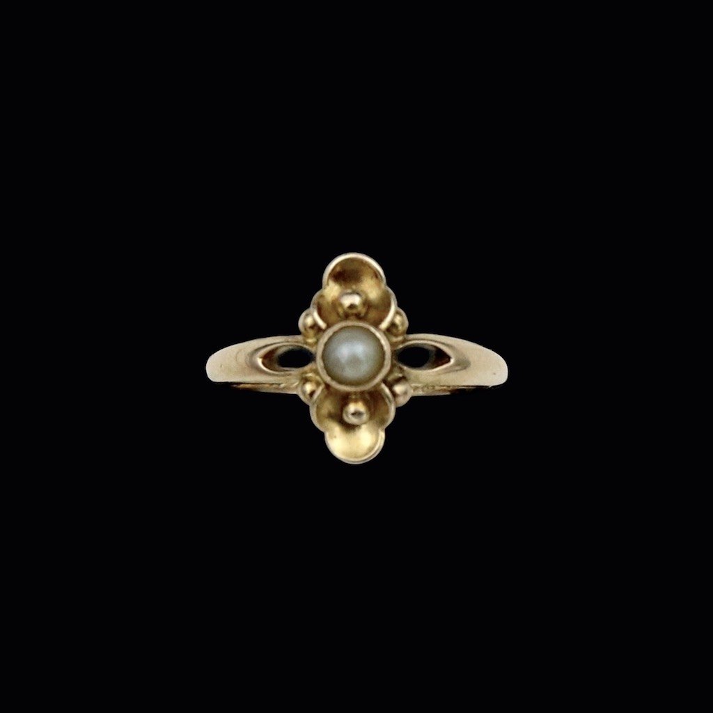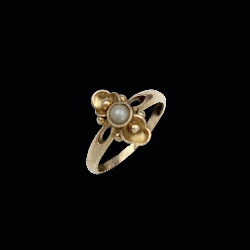 Evald Nielsen 1879-1958. Art Nouveau 14k Gold Ring with Pearl.