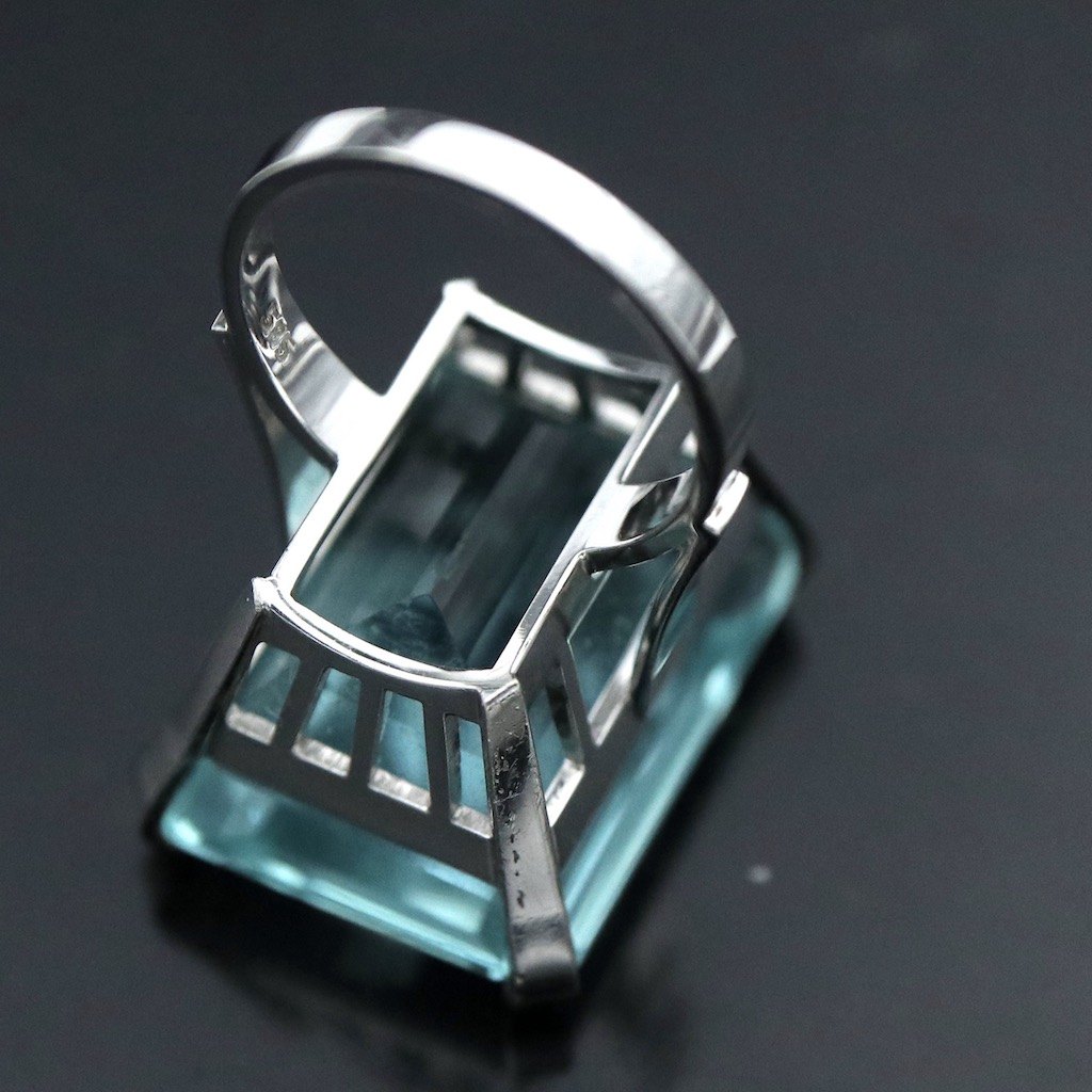14k White Gold Ring with Aquamarine.
