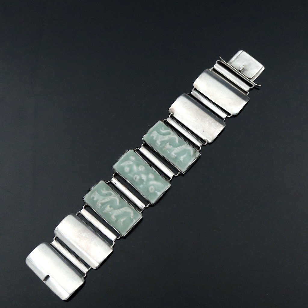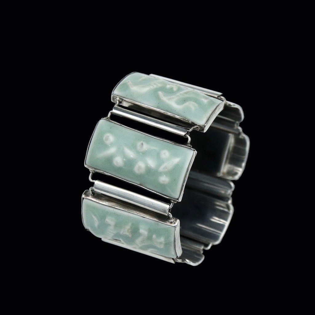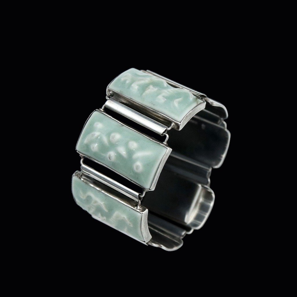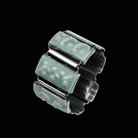 Jais Nielsen. Sterling Silver Bracelet with Celadon Ceramic.