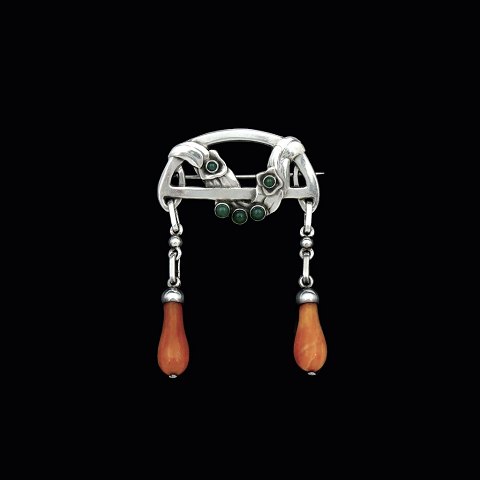 Georg Jensen. 826s Silver Brooch with Agates and Amber. 1907-14 Hallmarks.
