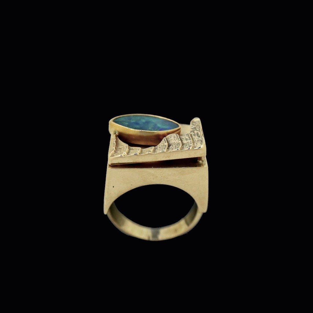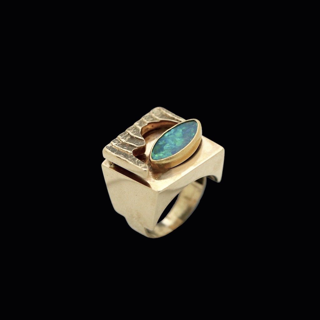 Frank Ahm. Danish 14k Gold Ring with Opal.