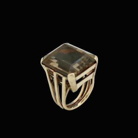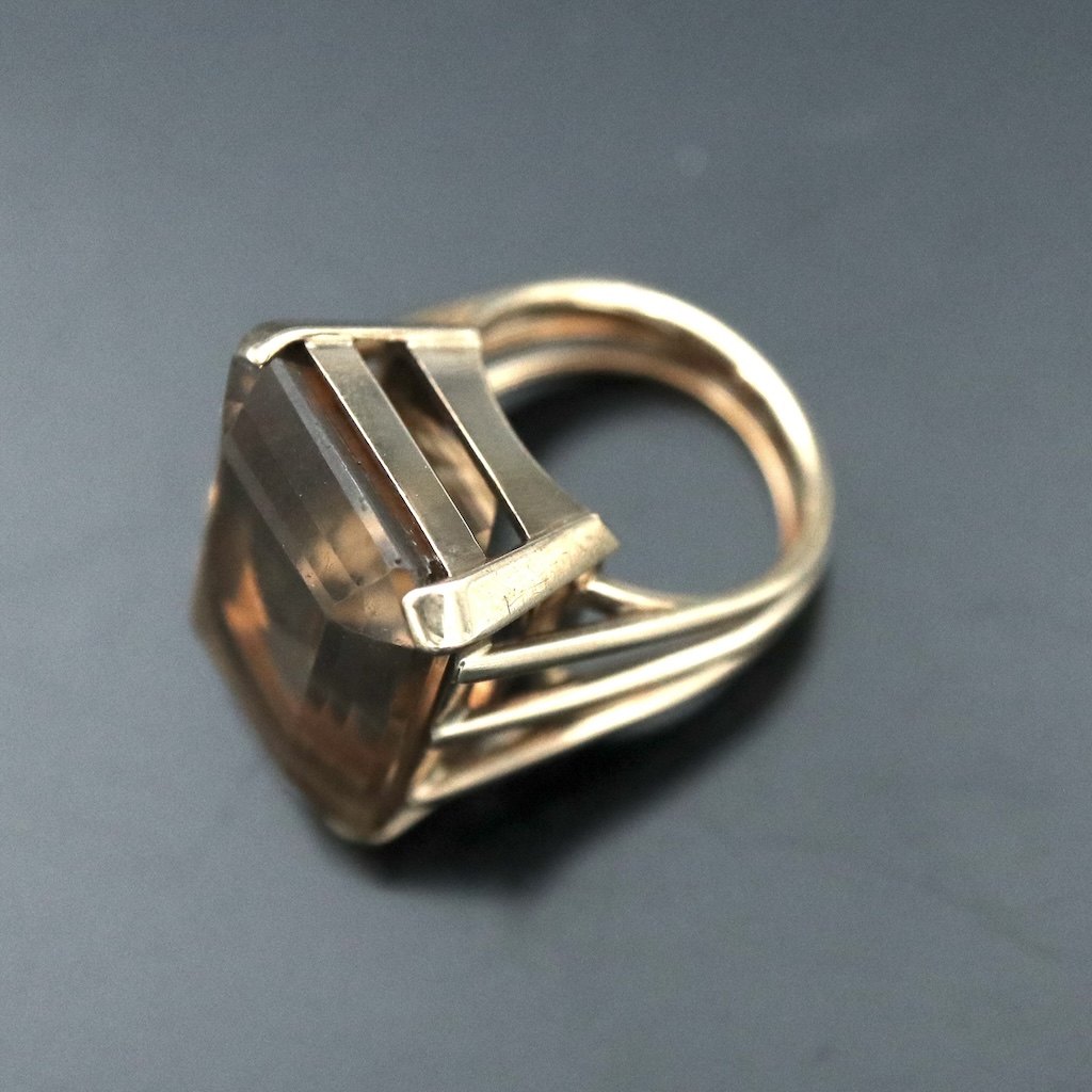 Danish 14k Gold Cocktail Ring with Smoke Quartz.