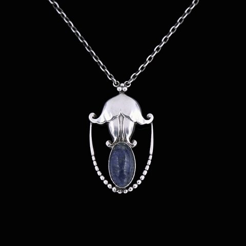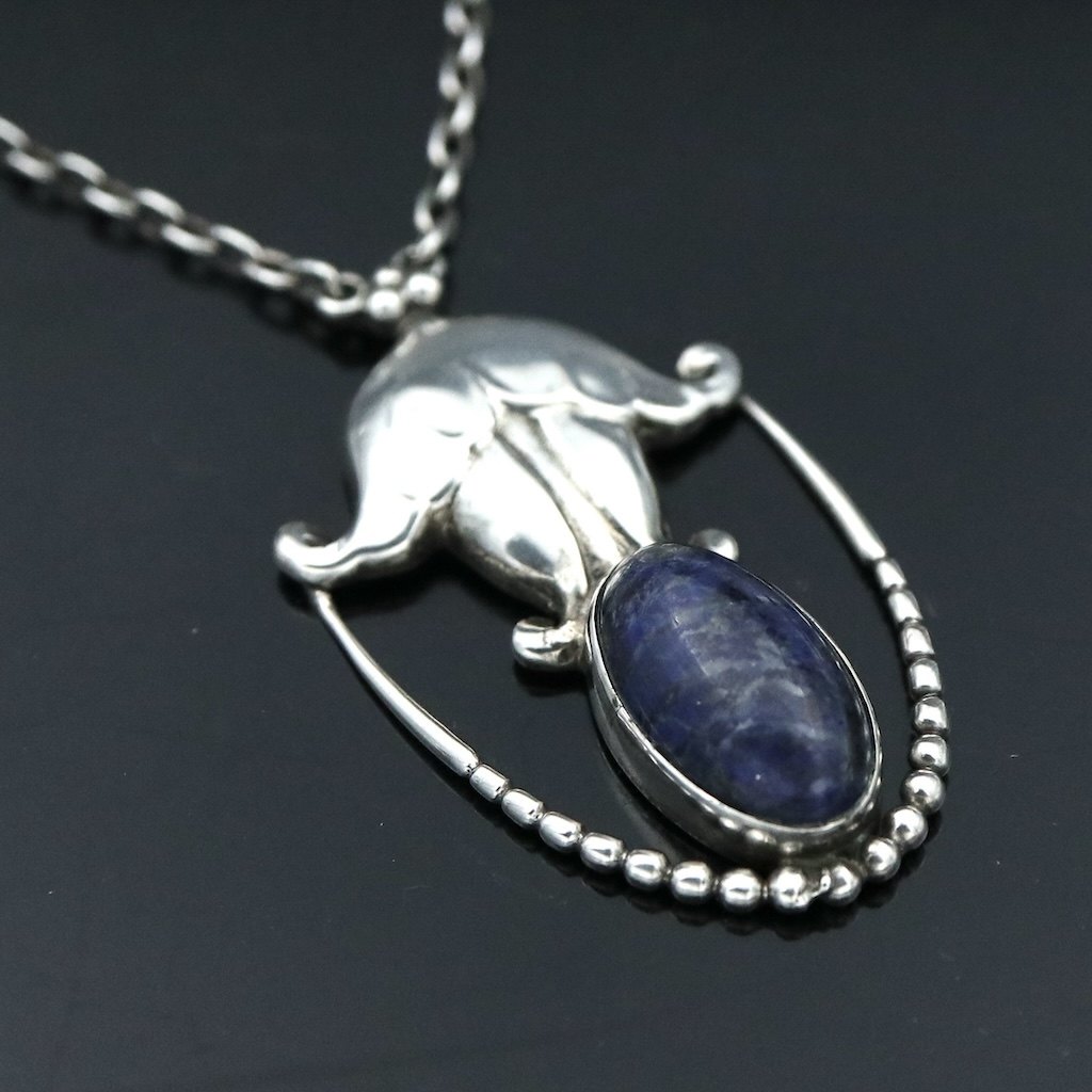 Georg Jensen. Silver Pendant #42 with Lapis Lazuli - 1915-27 Hallmarks.